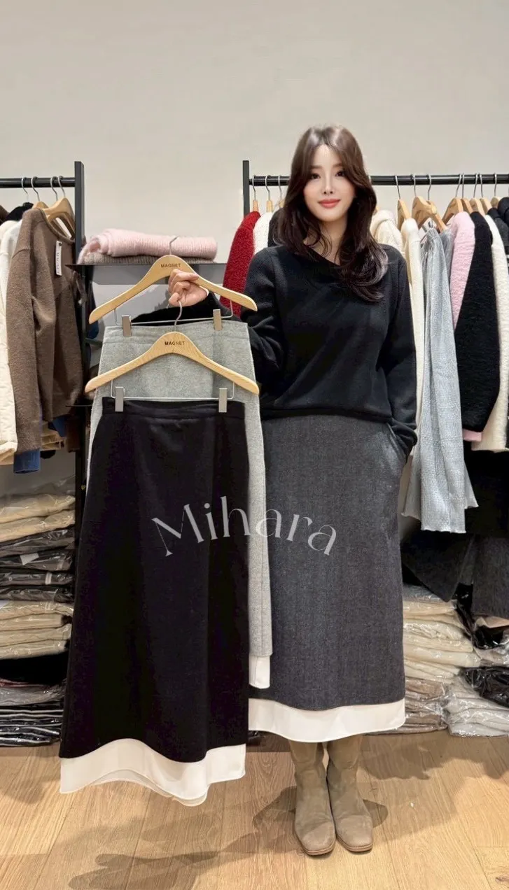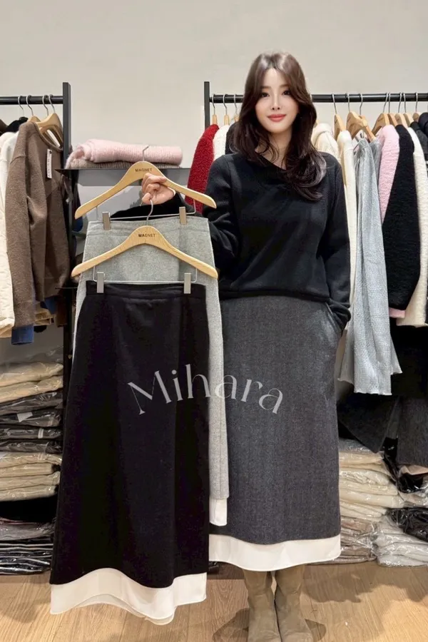 A13 1225高檔小香家後開衩撞色雙層羊毛50%針織半裙3色