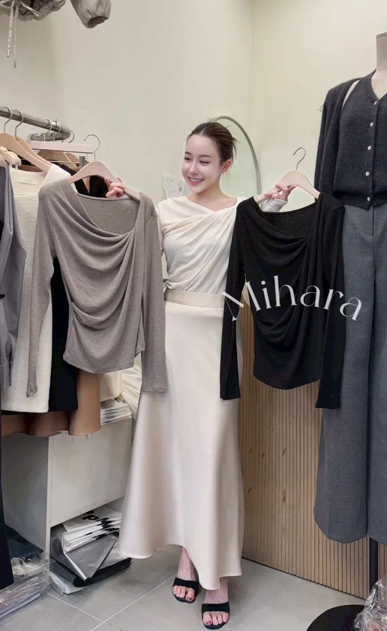 A28 1225(限量特)高檔優雅家抓褶不規則領羊毛10%針織上衣3色