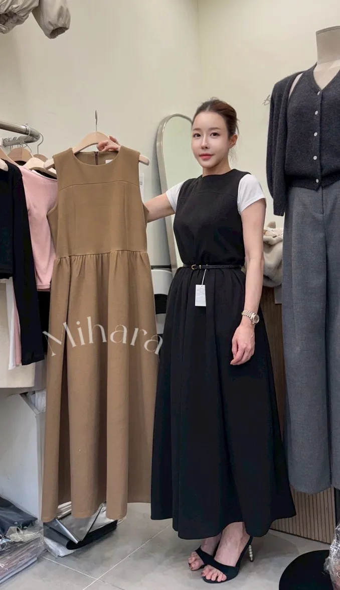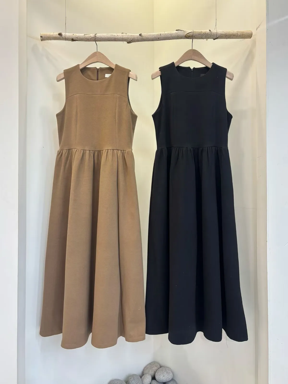A35 1225高檔優雅家羊毛30%內磨毛圓領背心洋裝2色