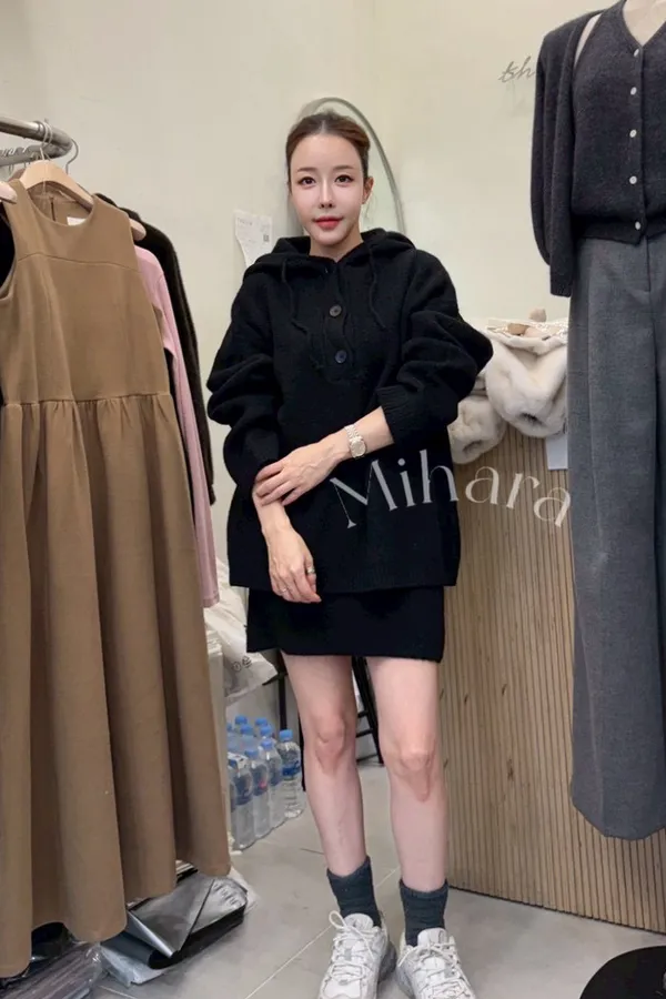 A36 1225(限量特)高檔優雅家羊毛30%連帽大學T恤+短裙(SET)