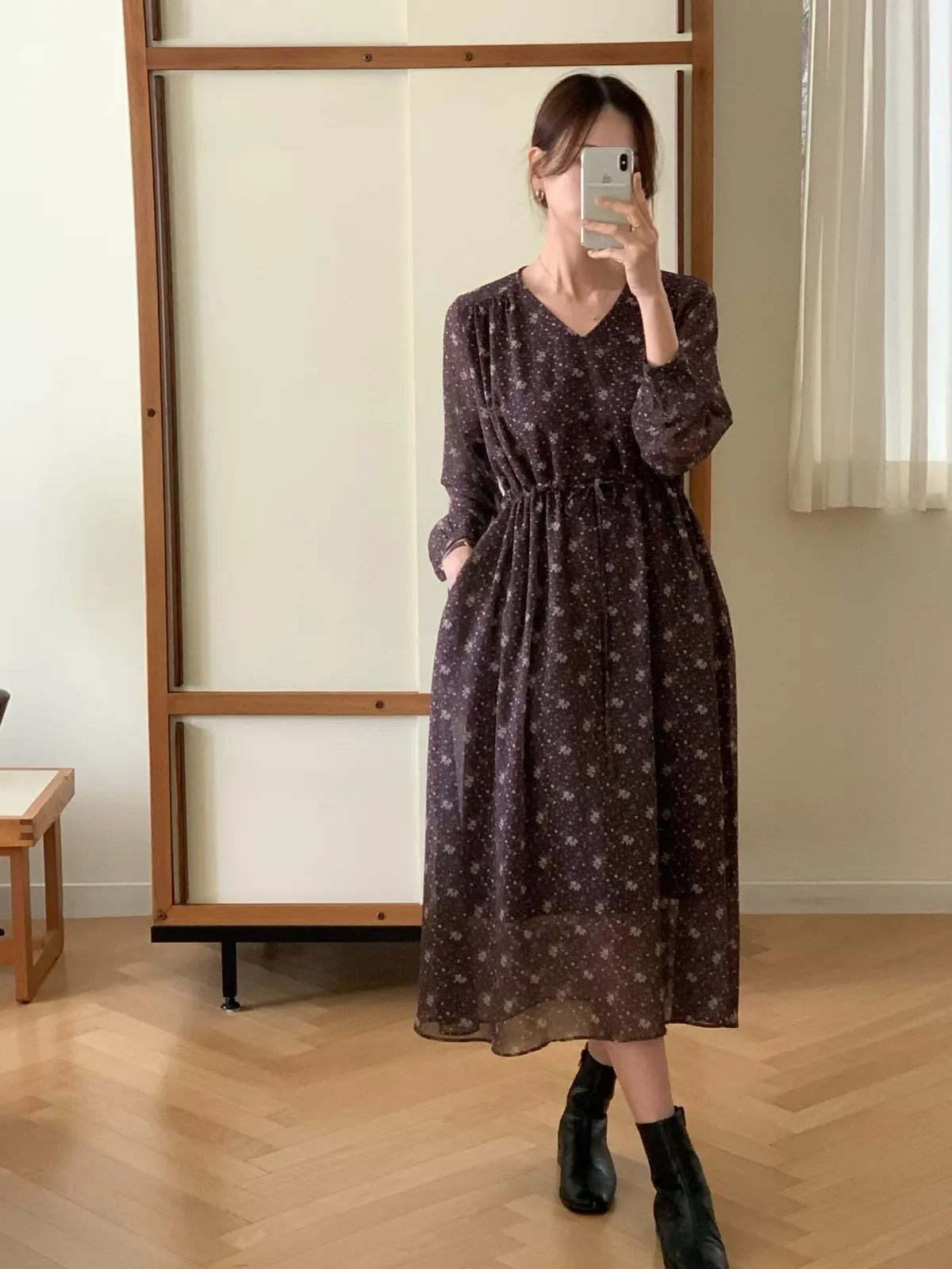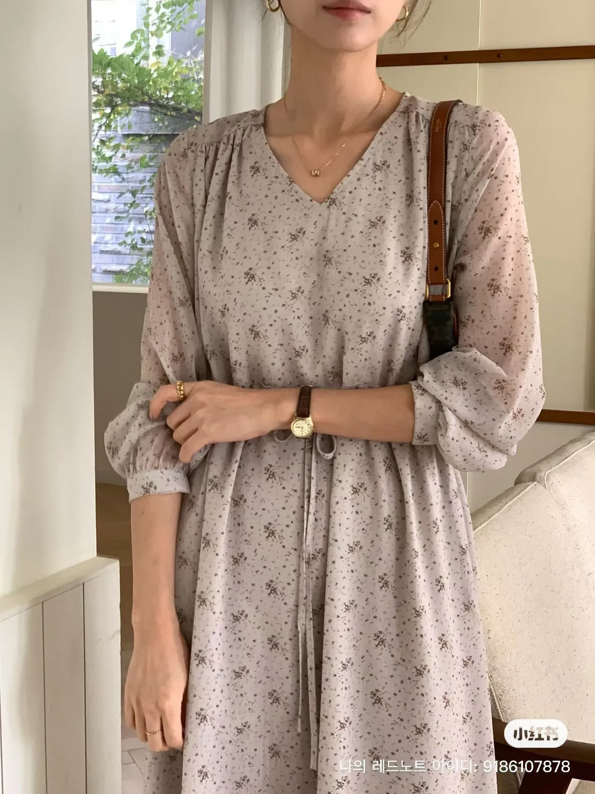 A23 1228(限量特)高檔家收腰綁帶V領雪紡洋裝2色