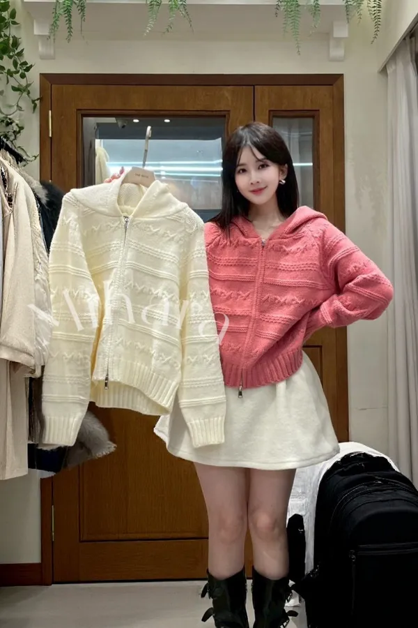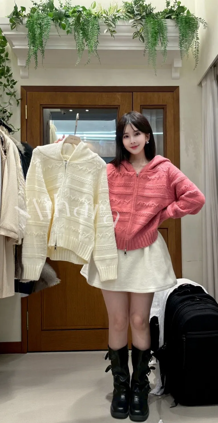 A44 1229(限量特)高檔家造型橫條連帽羊毛47%針織外套2色