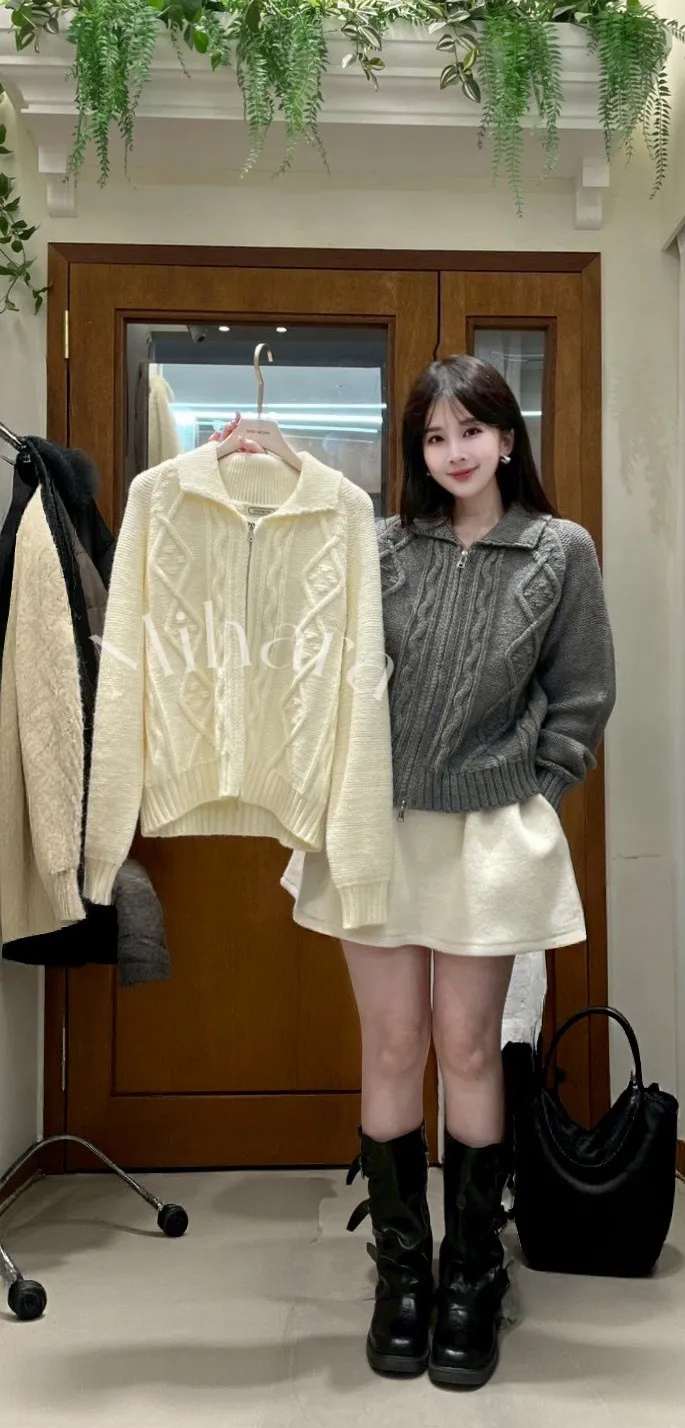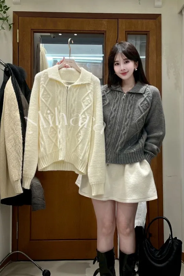 A45 1229(限量特)高檔家菱格翻領羊毛47%針織外套2色