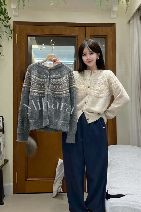 A52 1229(限量特)高檔家愛心蝴蝶結圖案彩色排釦圓領羊毛混羊駝毛針織毛衣2色