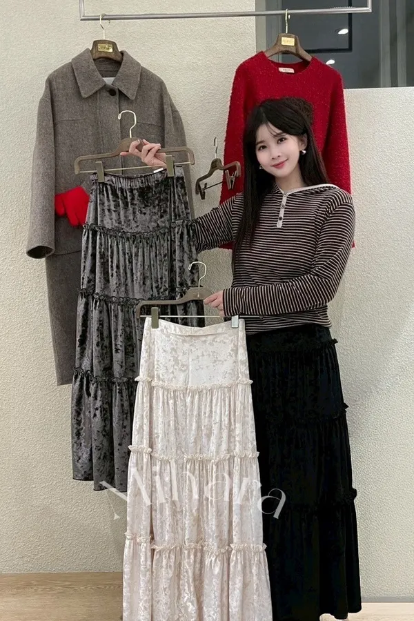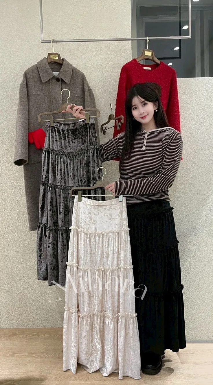 A55 1229高檔家光澤絨布蛋糕裙3色