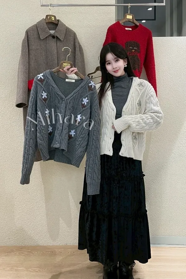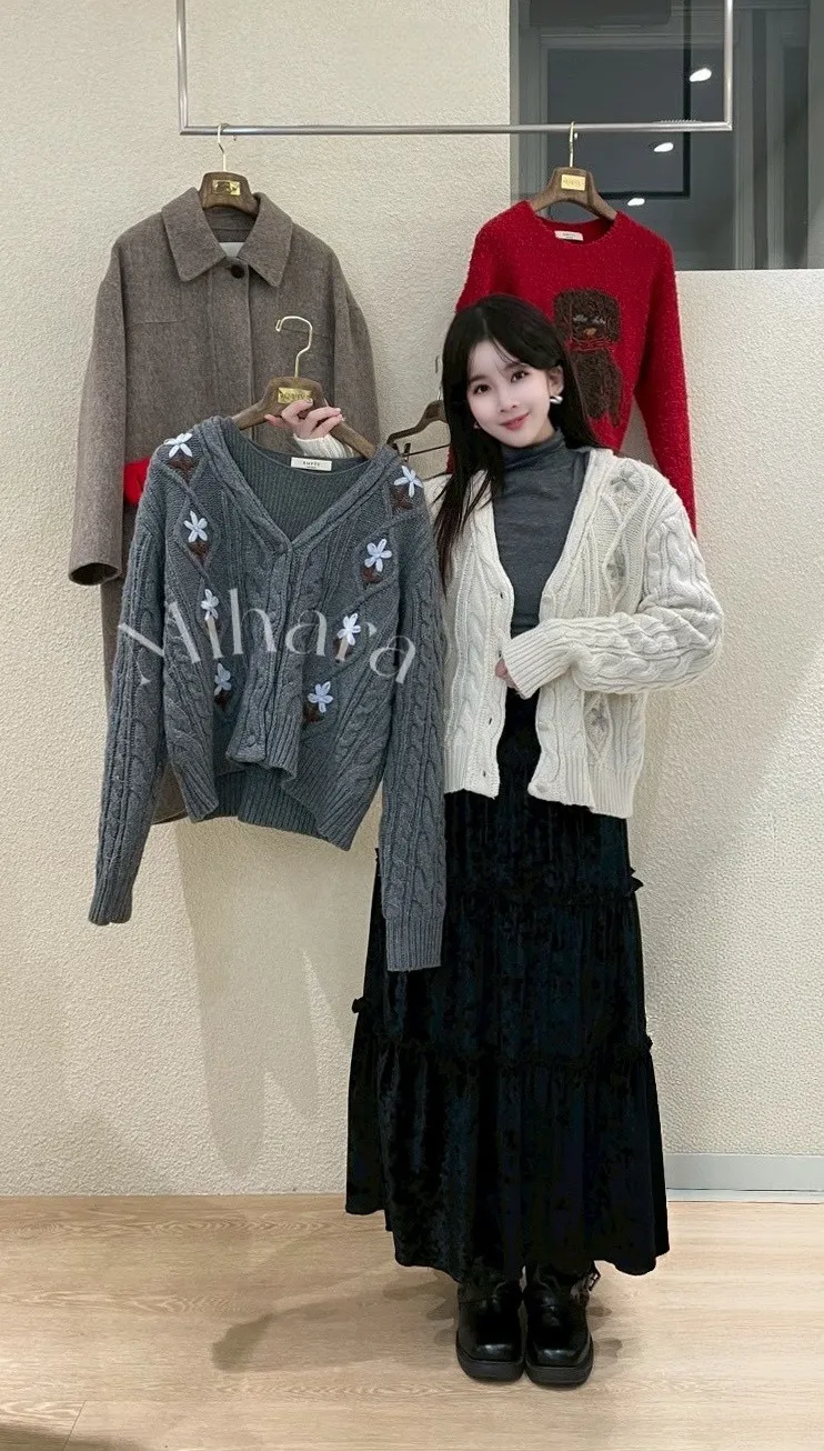A58 1229(限量特)高檔家花花菱格羊毛100%針織手工外套2色