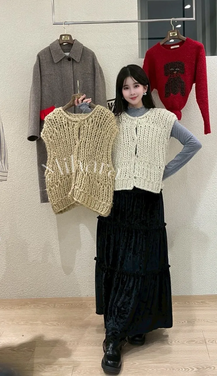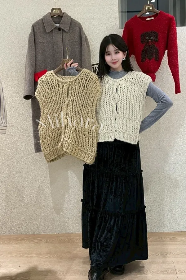 A72 1229高檔家排釦圓領羊毛100%洞洞針織背心2色