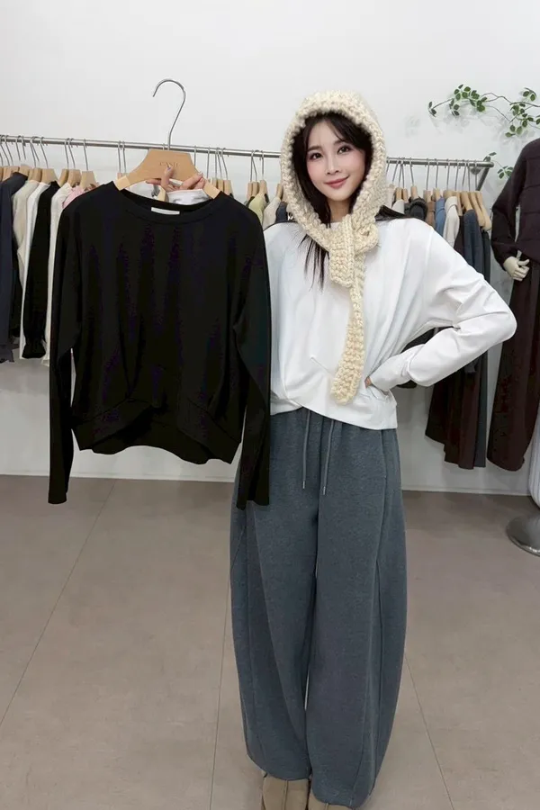A10 1230錢錢歐膩家交叉下擺圓領上衣2色