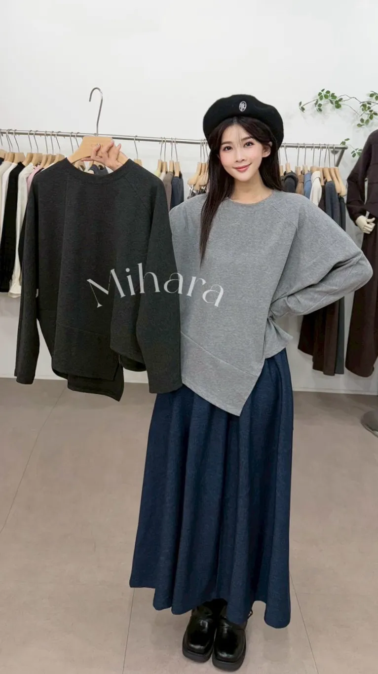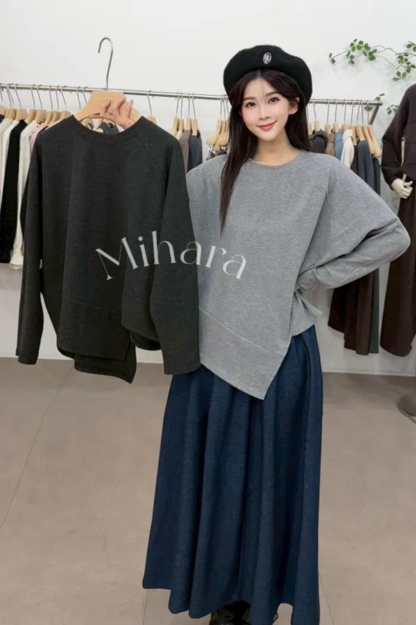 A14 1230錢錢歐膩家不規則下擺圓領上衣2色