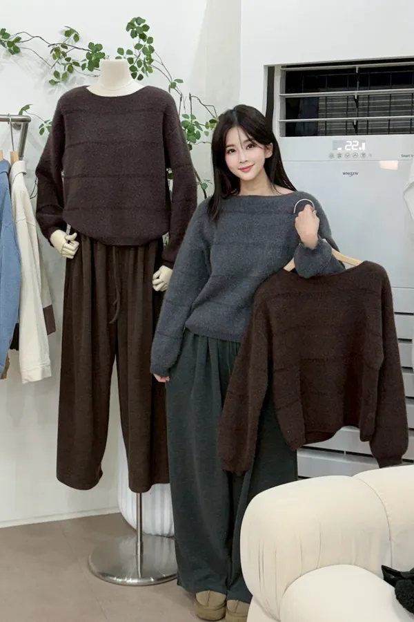 A20 1230錢錢歐膩家橫條帆船領混安哥拉針織毛衣2色