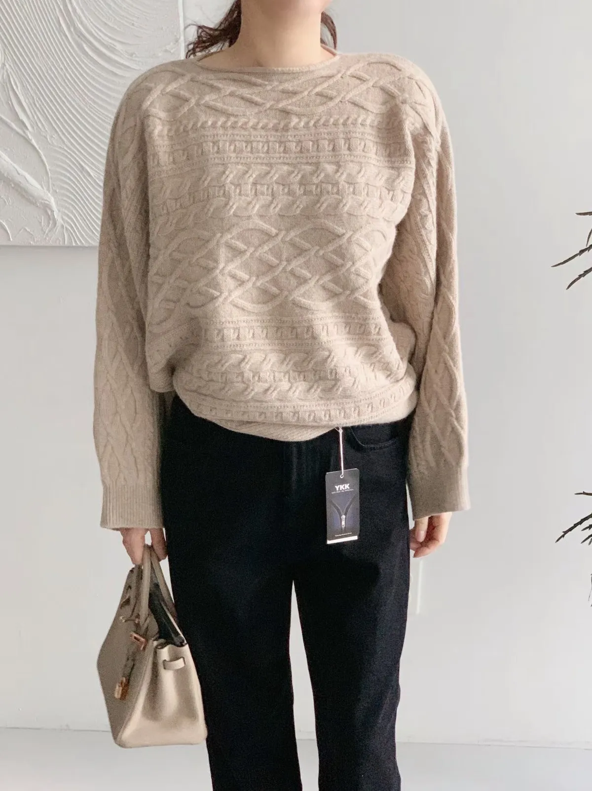 A25 1230(限量特)高檔質感家高級羊毛50%麻花編圓領針織毛衣4色