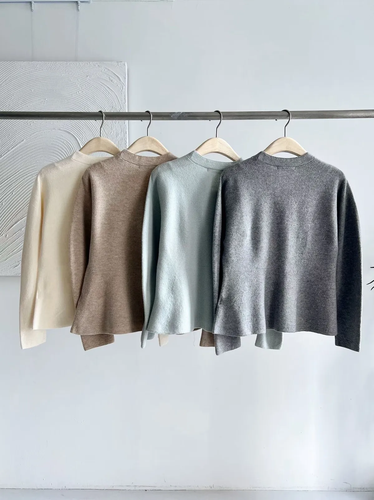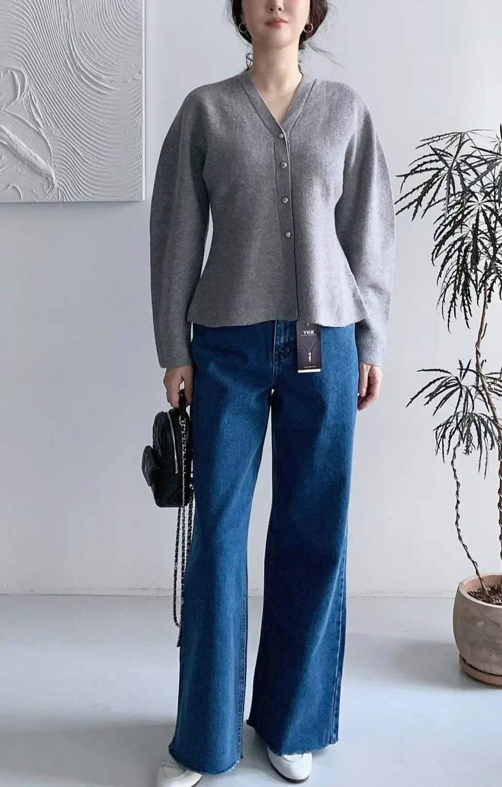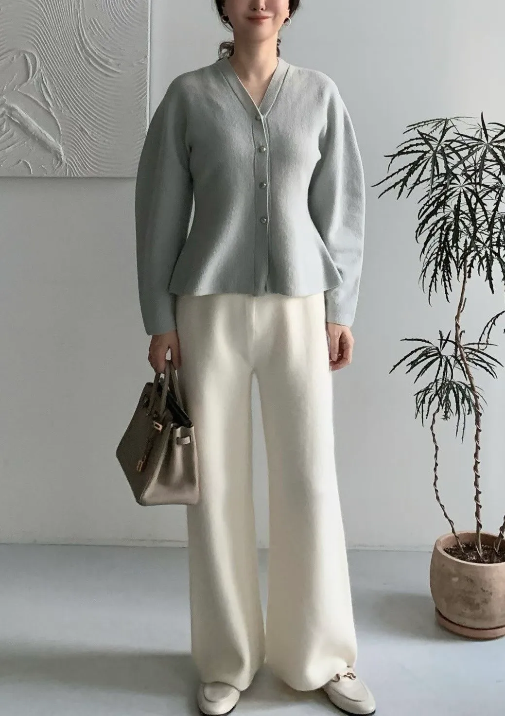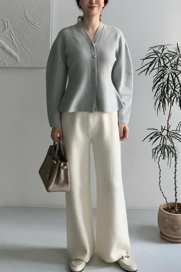 A27 1230(限量特)高檔質感家米色羊毛50%排釦V領針織毛衣