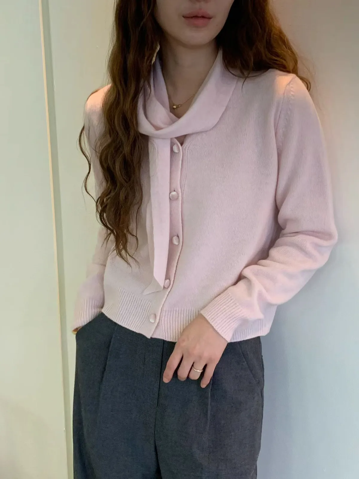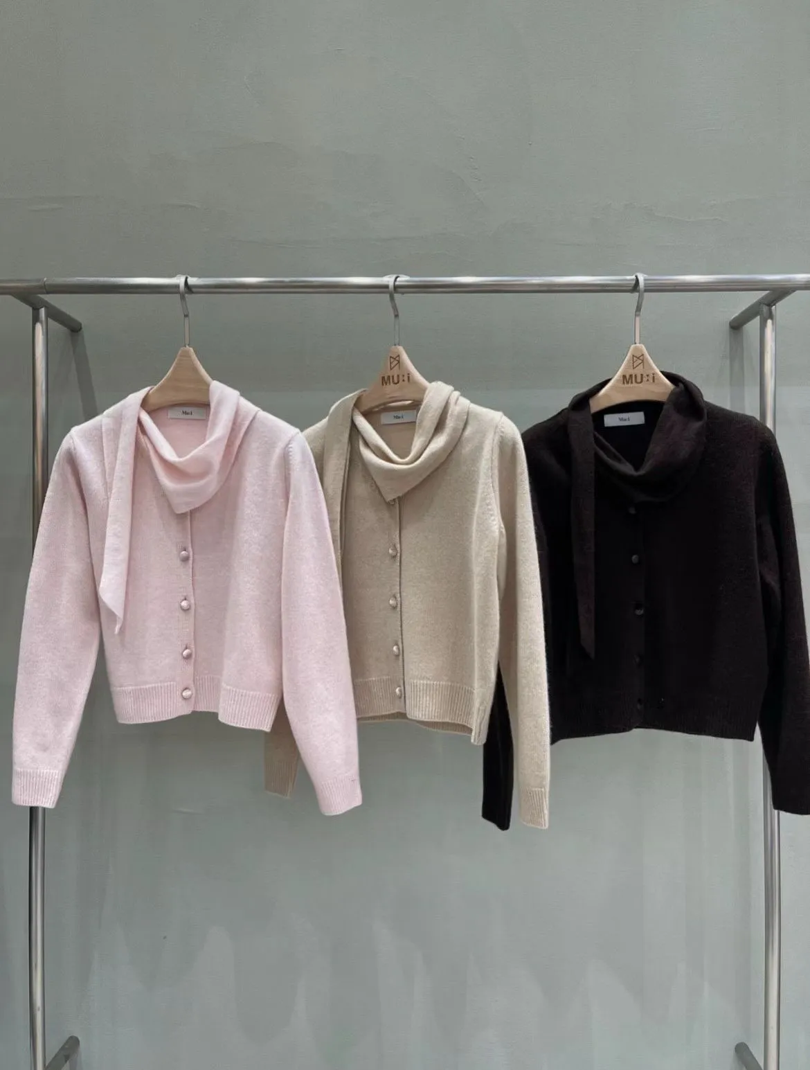 A74 1201氣質歐膩家一體成型繞脖綁帶排釦V領羊毛混羊絨針織上衣3色