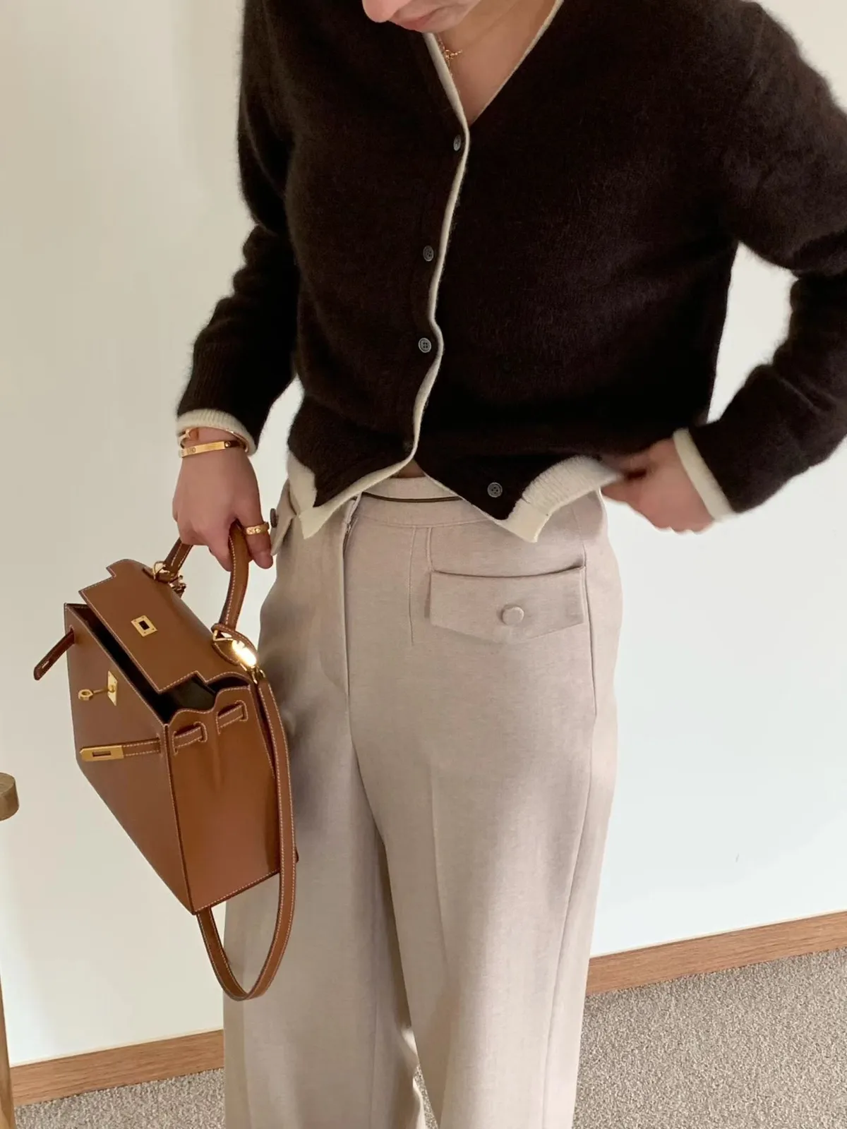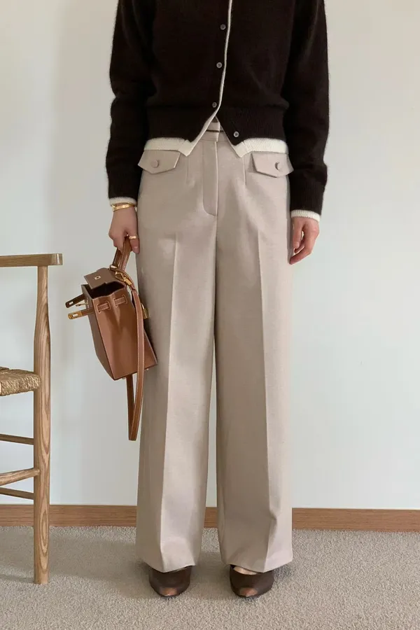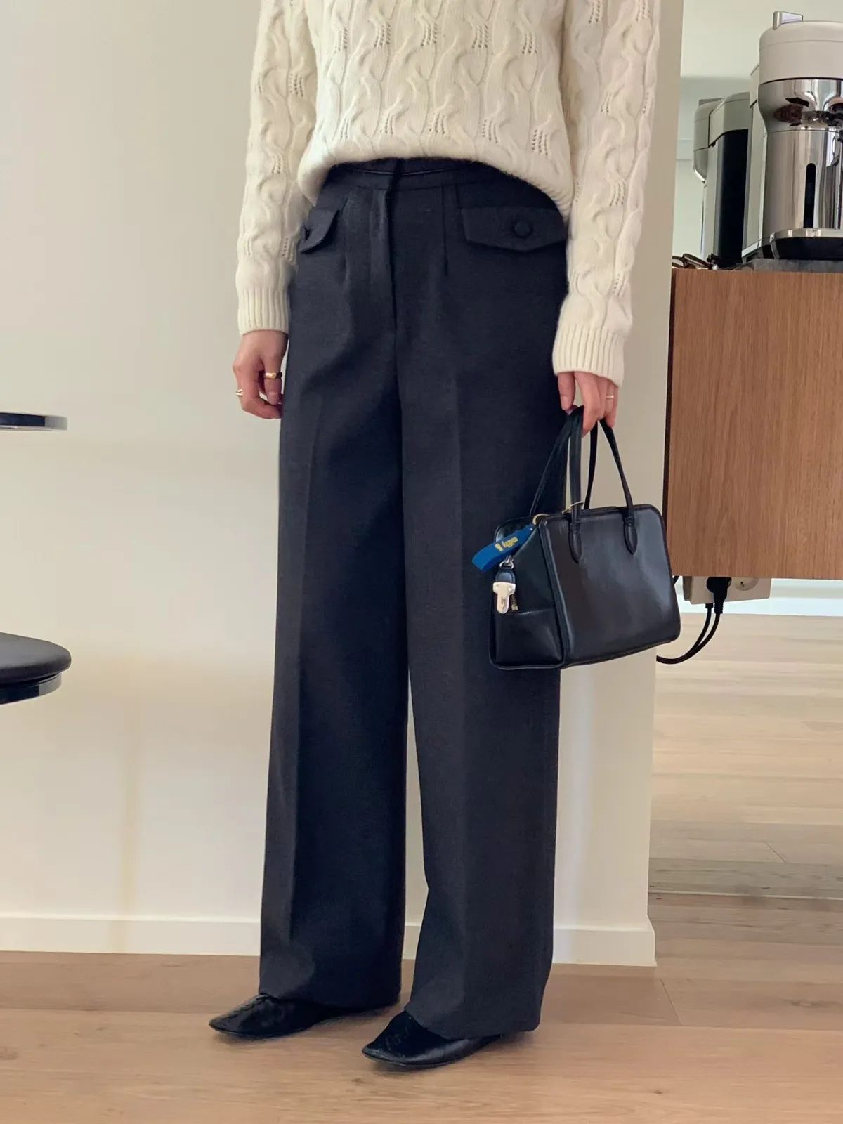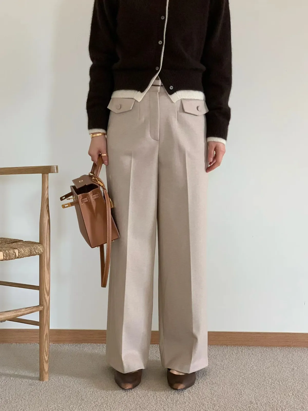 A75 1201氣質歐膩家混人造絲中線內磨毛直筒西裝褲2色(S/M/L)