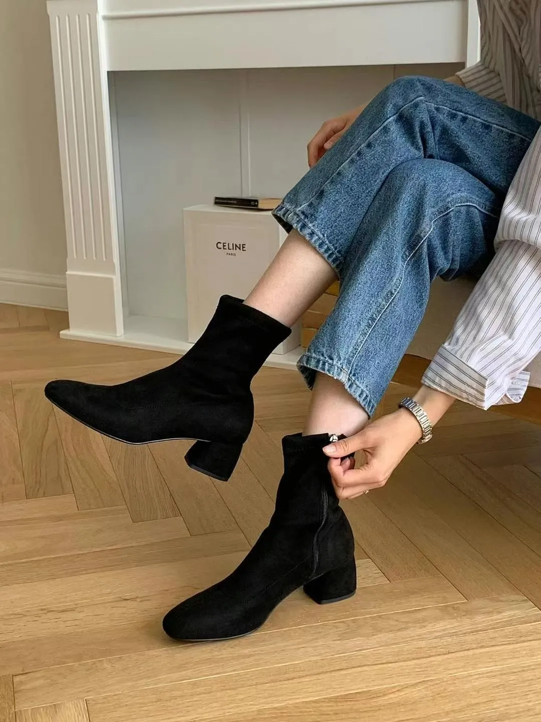 E62正韓製美型中跟短靴(225-250)5cm