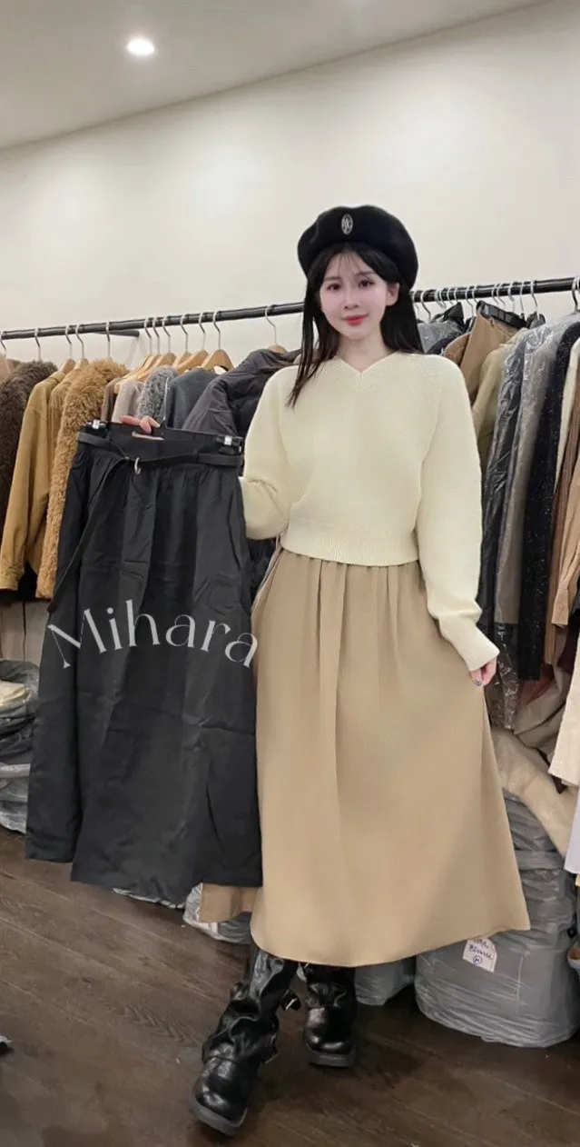 A15 0105(限量特)高檔質感家抓褶傘狀半裙附腰帶2色(S/M)