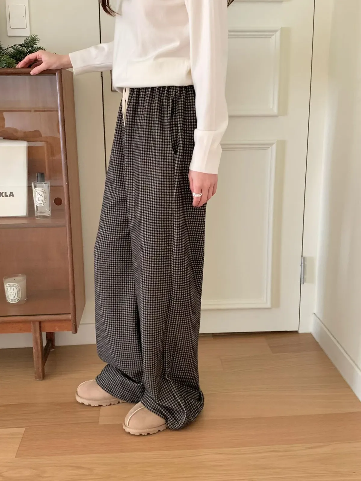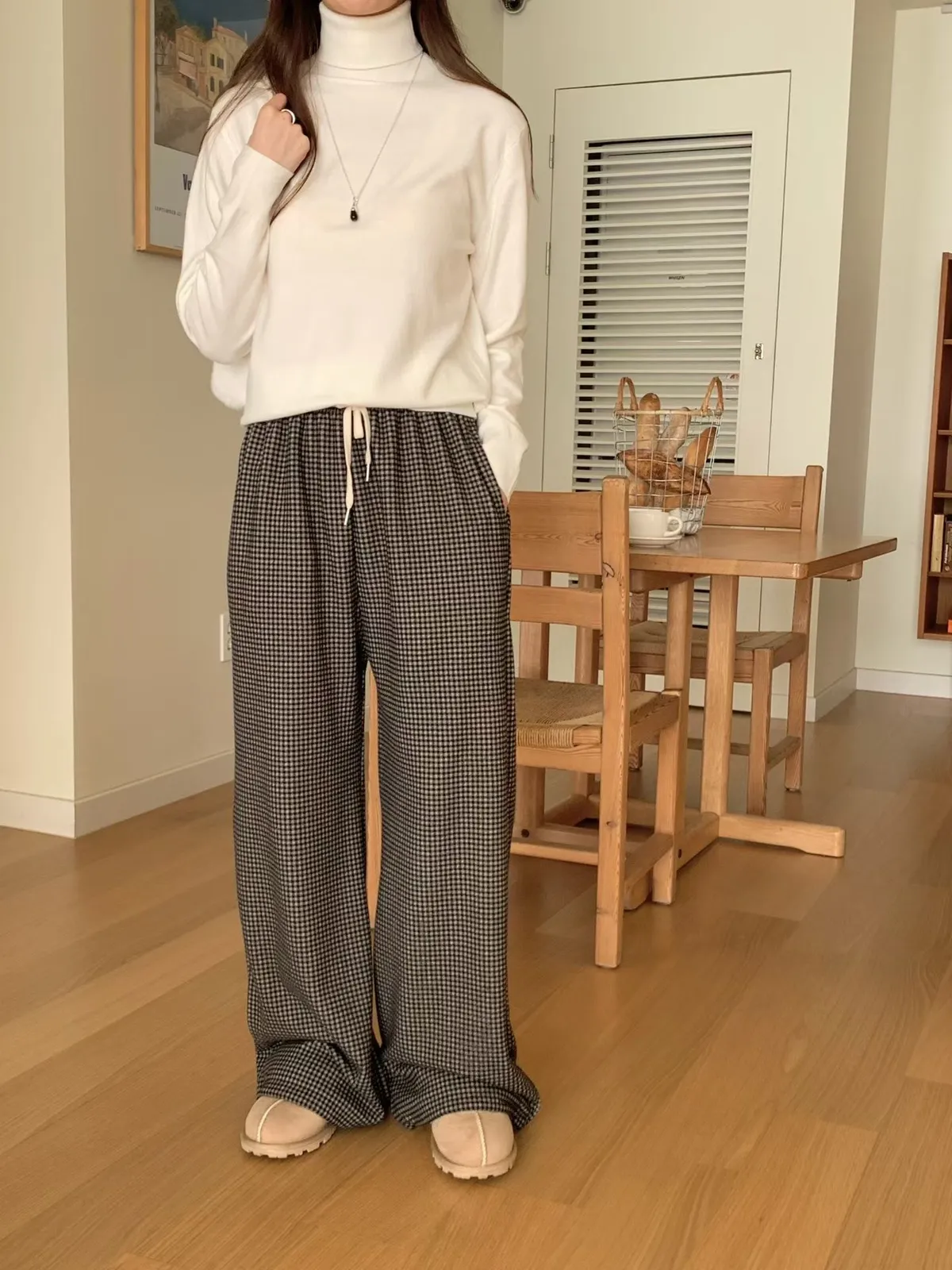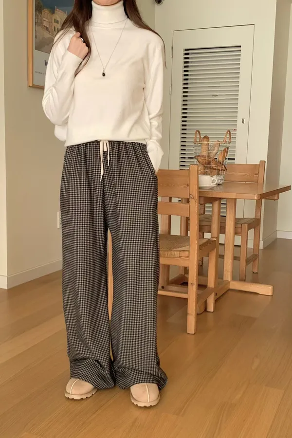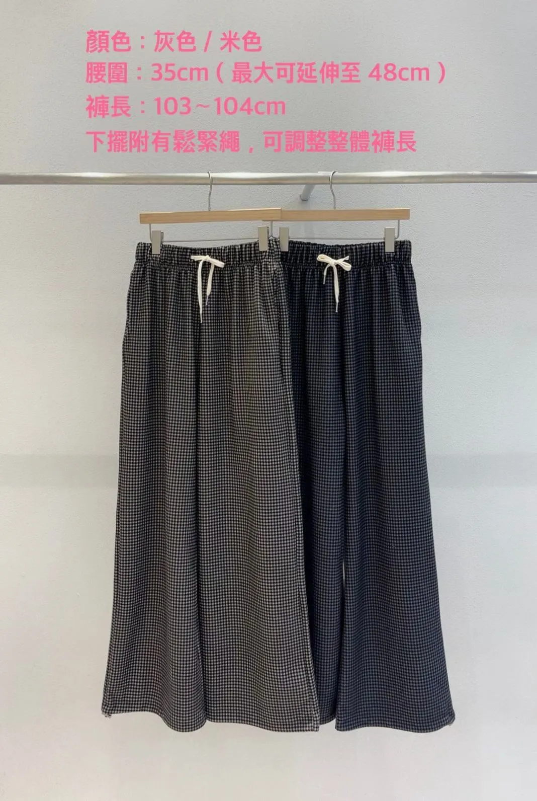 A25 0105(限量特)高檔針織家抽繩綁帶格紋刷毛褲2色