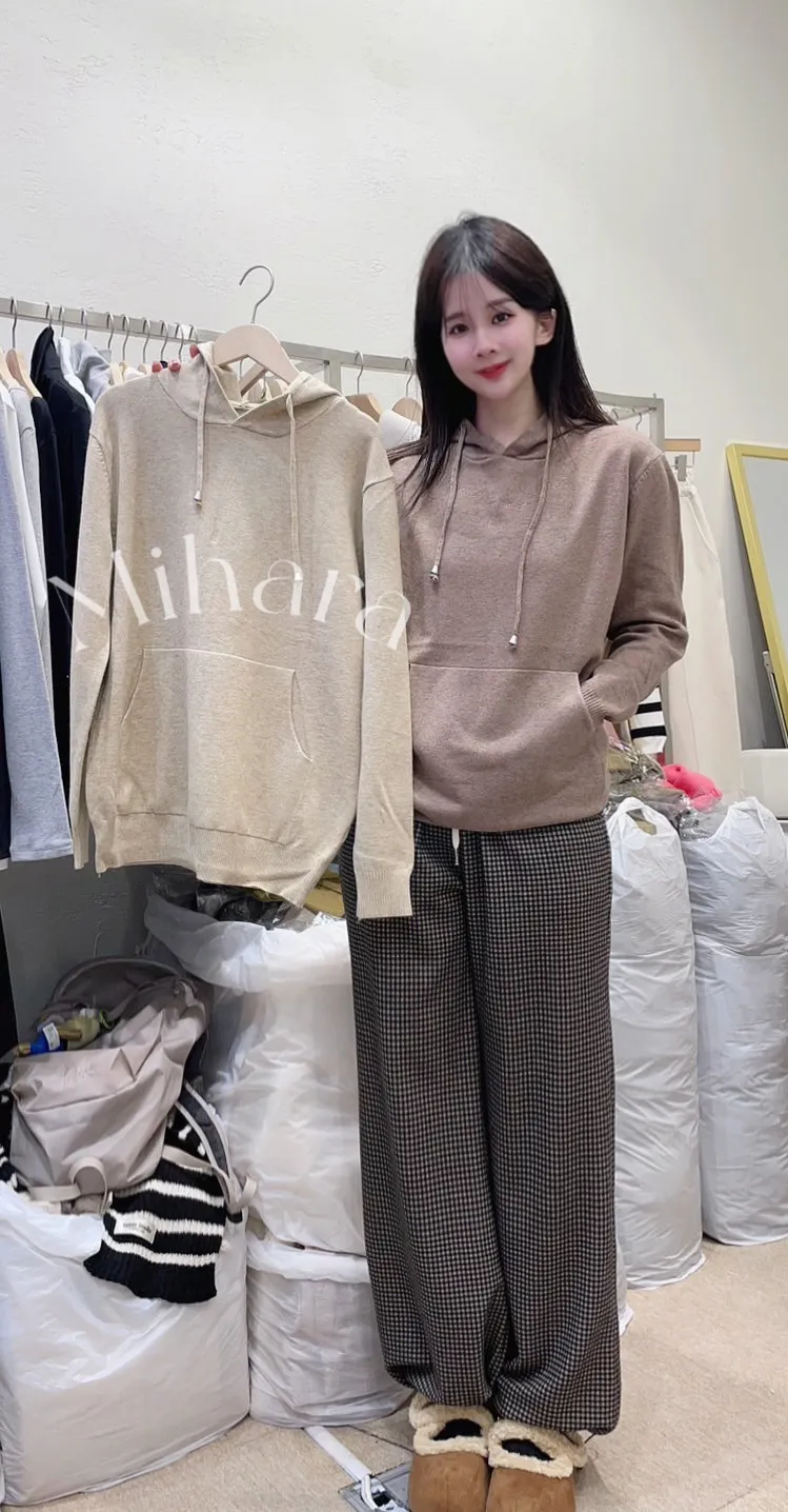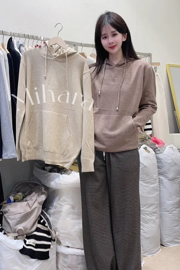 A26 0105(限量特)高檔針織家喀什米爾10%口袋連帽針織大學T恤2色