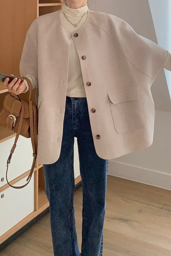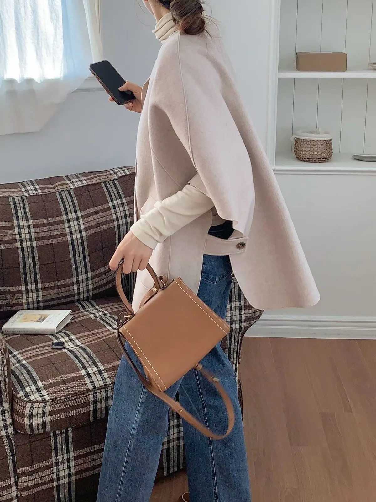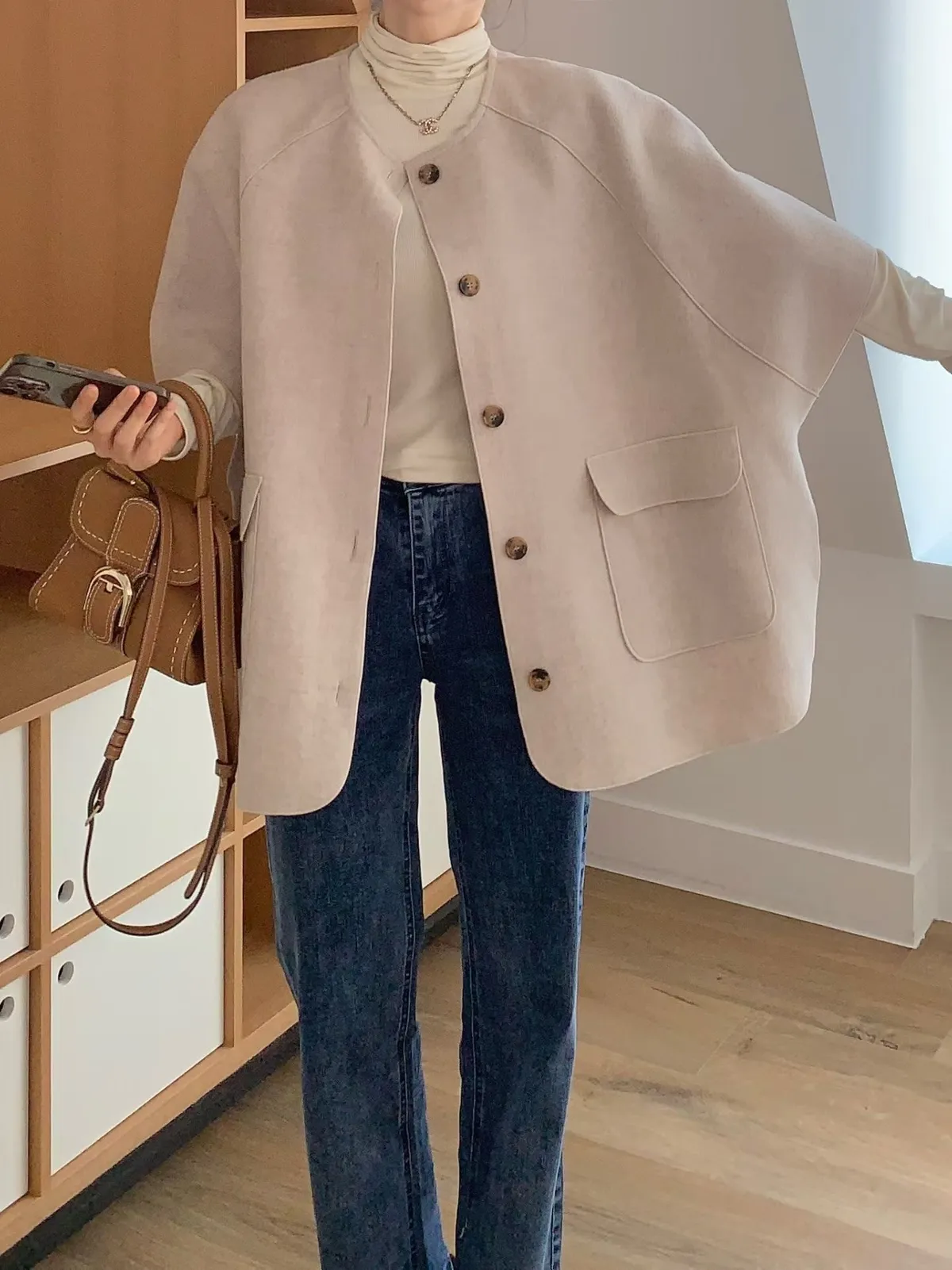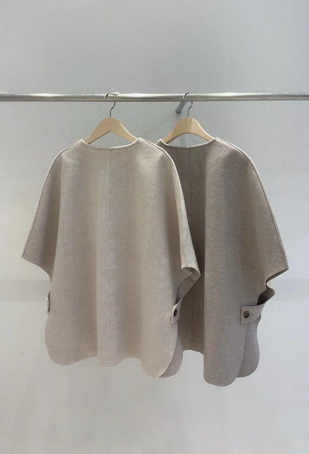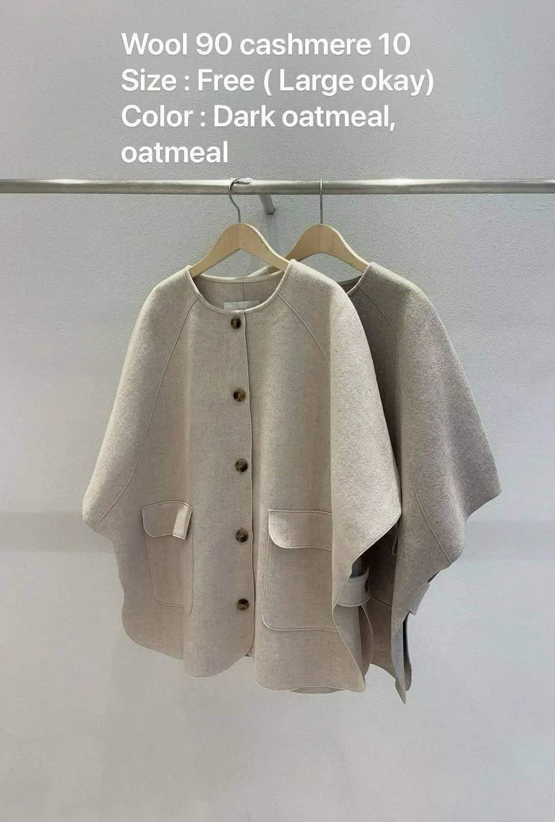 A31 0105(限量特)高檔針織家90%羊毛混羊絨圓領披肩外套2色