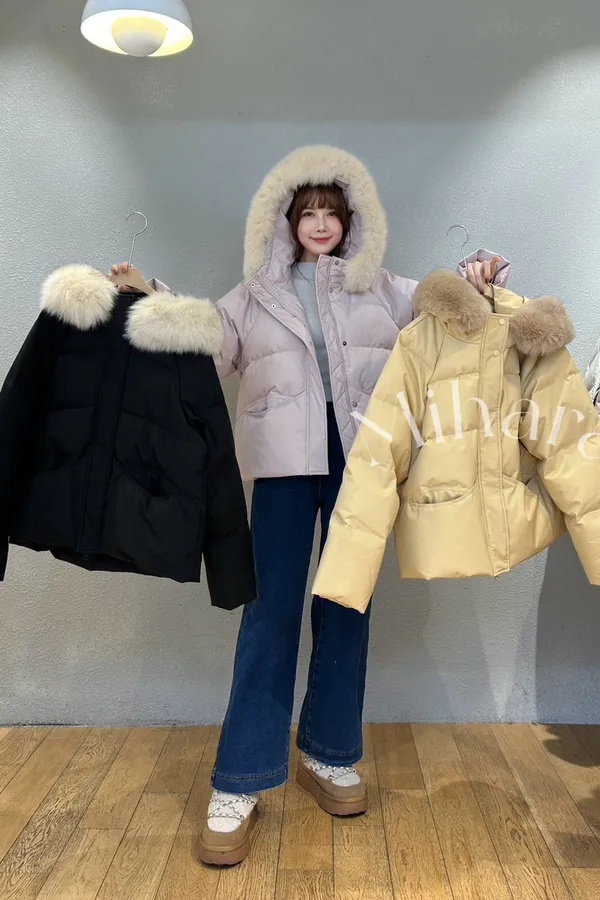 A38 0106高檔W外套鵝絨100%毛毛連帽外套3色