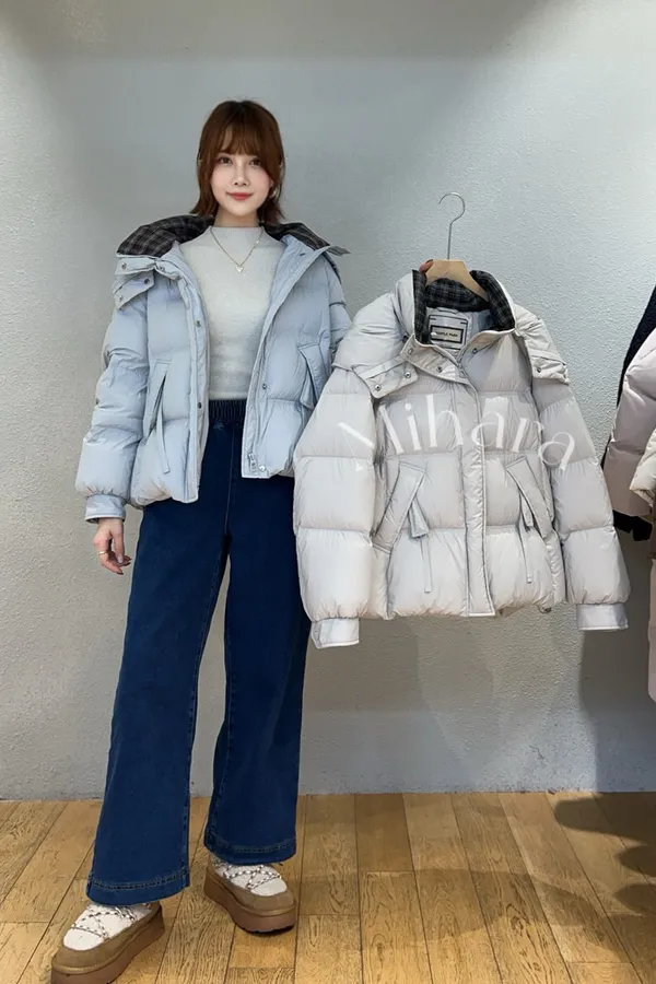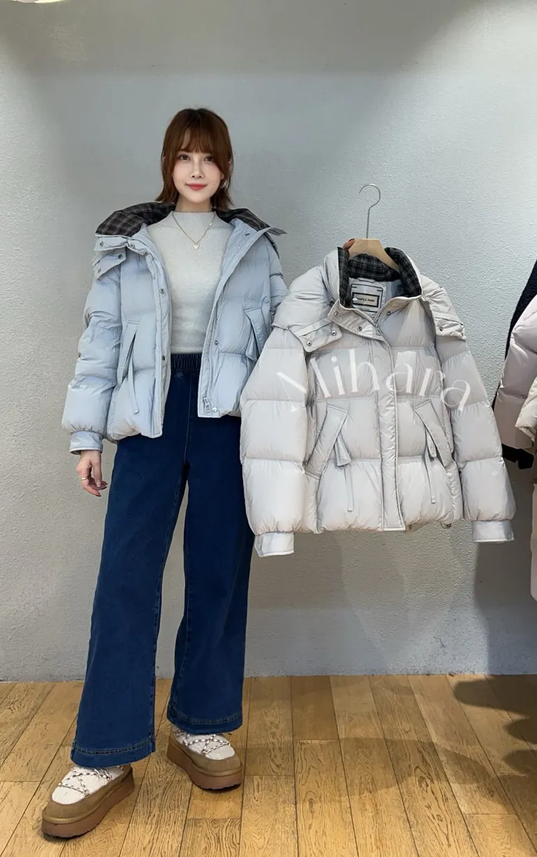 A46 0106高檔W外套鵝絨100%連帽格紋外套3色