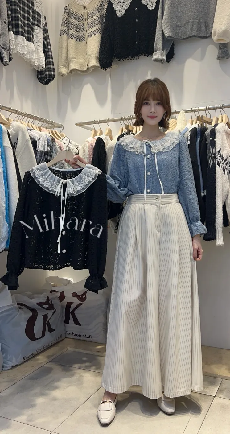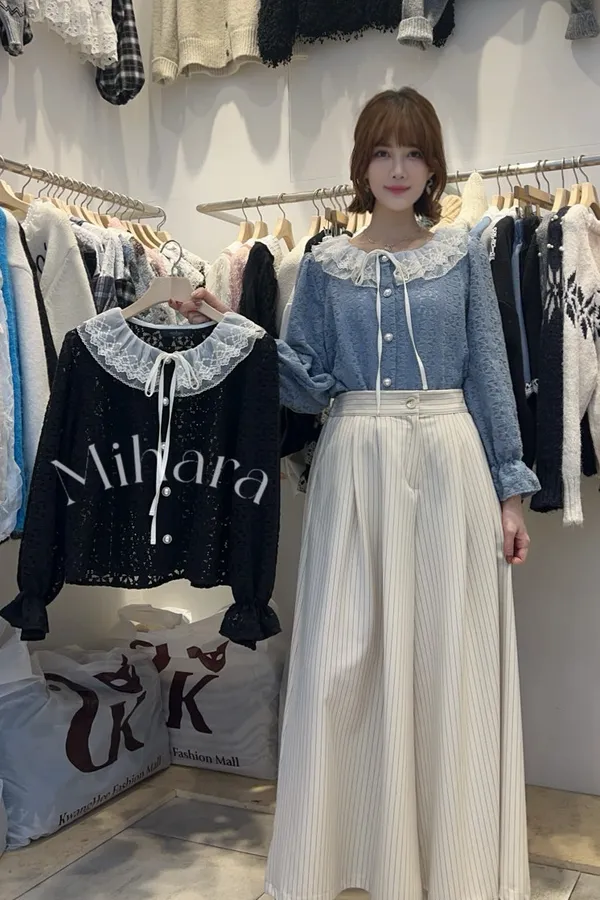 A67 0106(限量特)蕾絲家立體壓褶細直紋A字寬褲