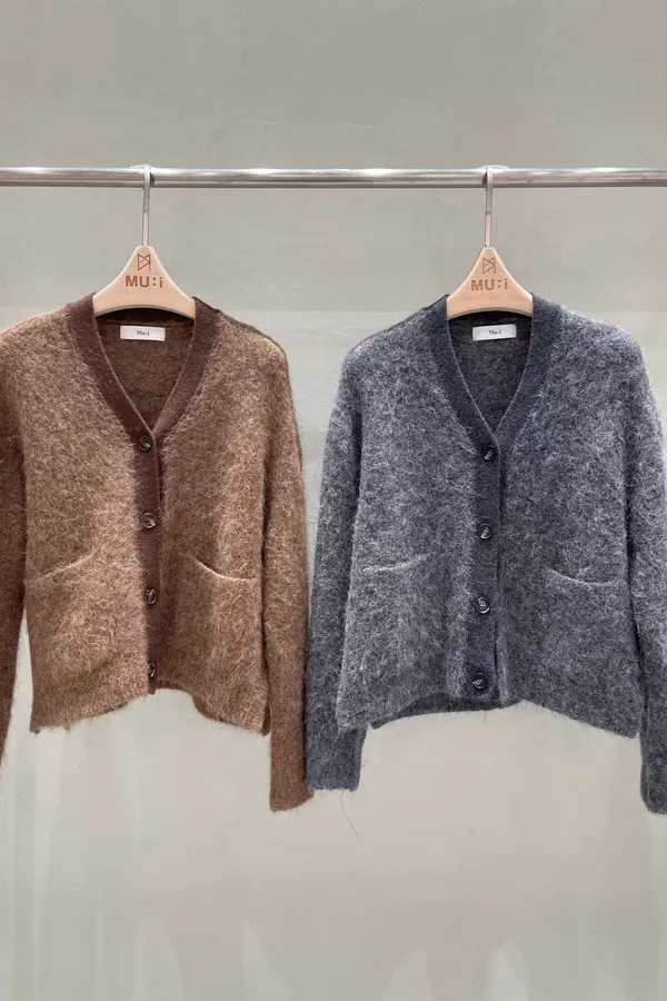 C203氣質歐膩V領開釦羊駝羊毛罩衫