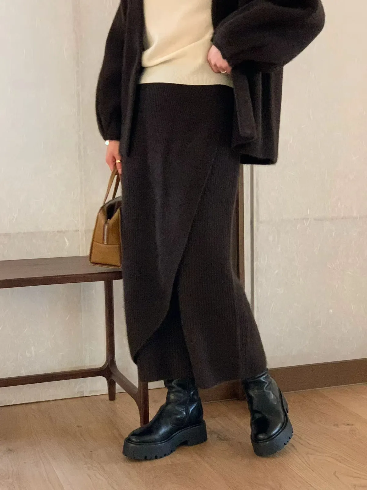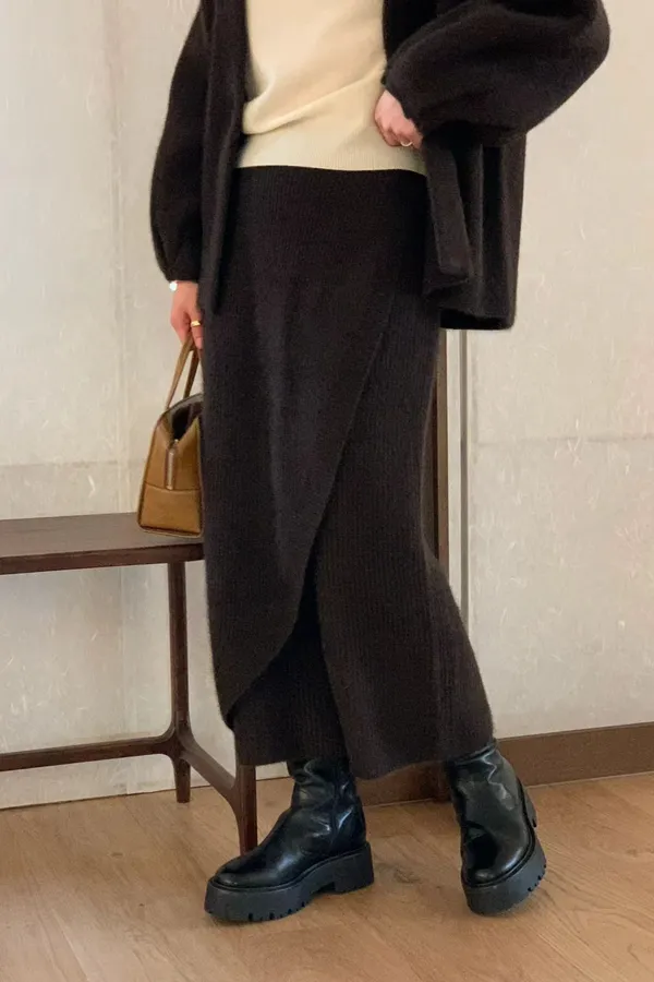 C229氣質歐膩混毛直紋長裙