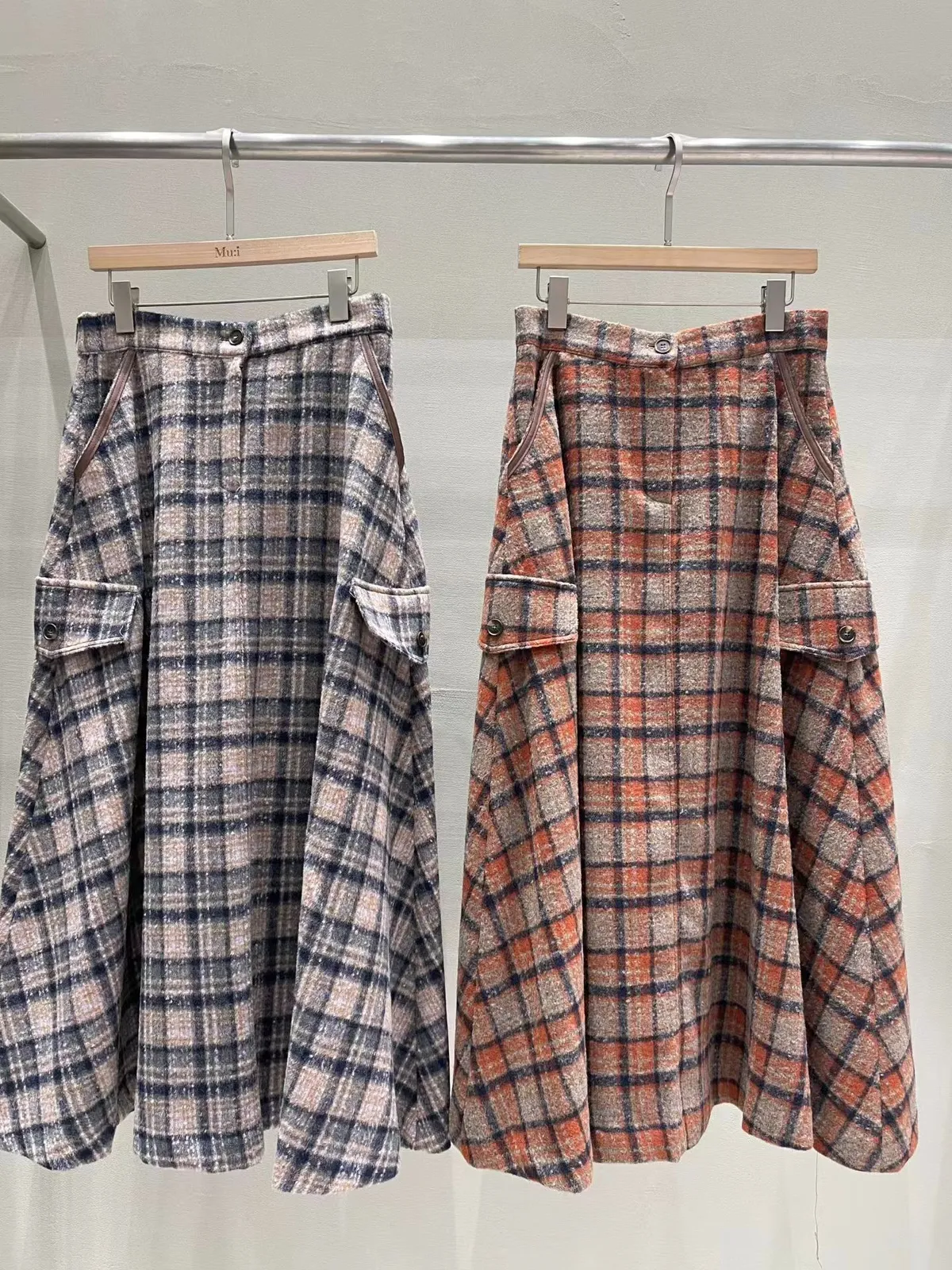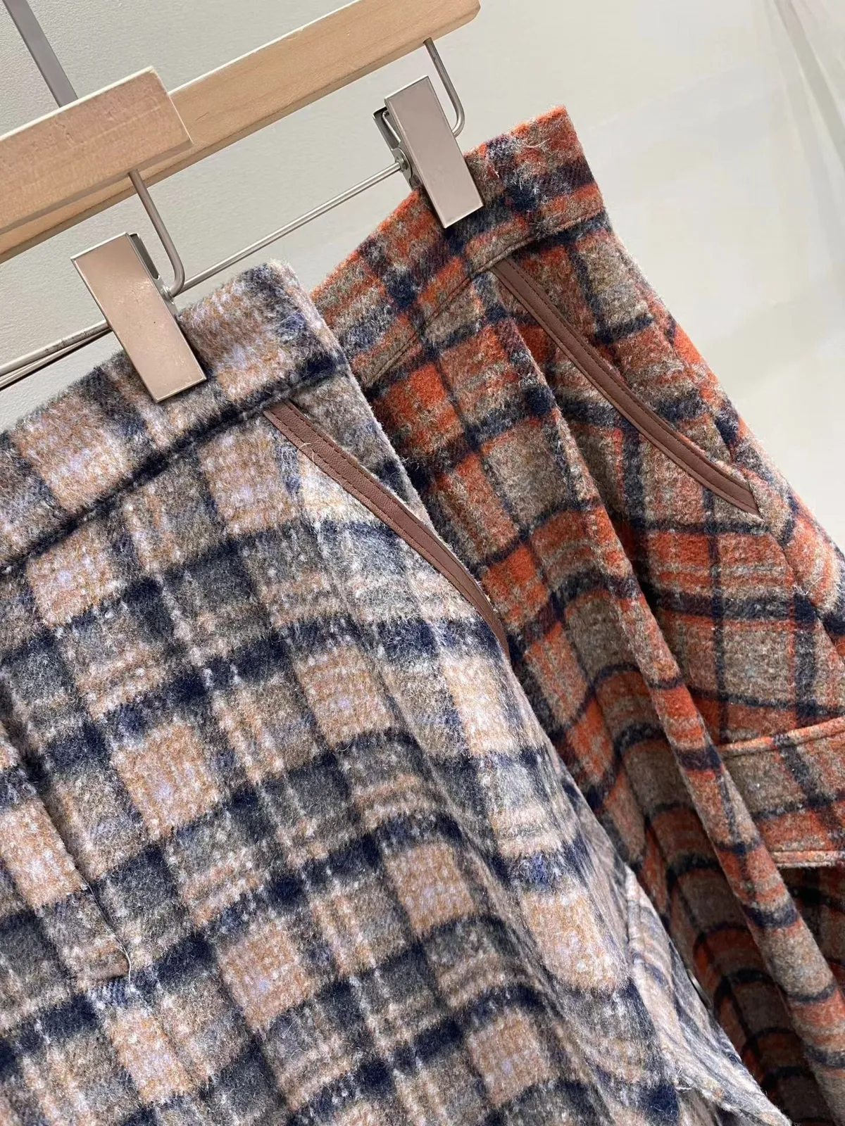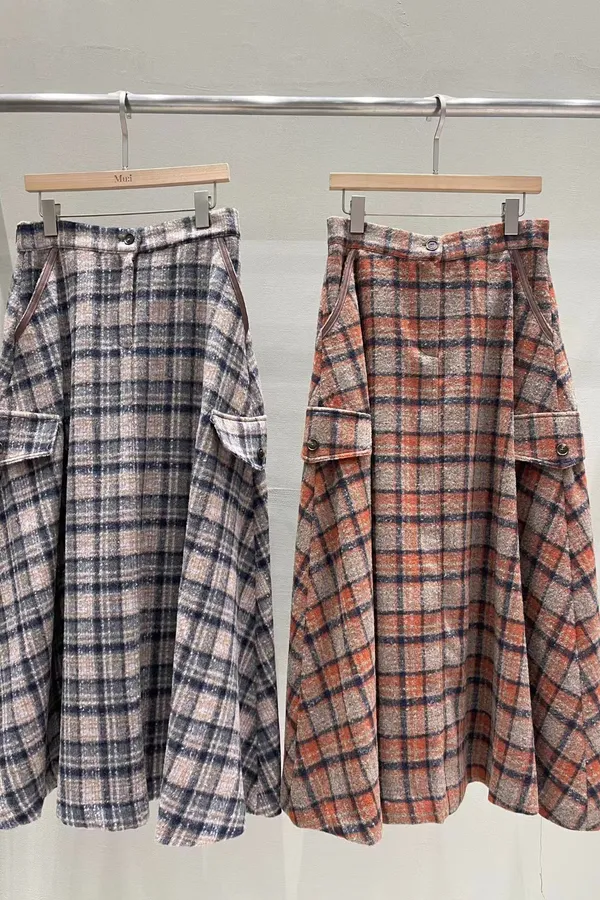 C115氣質歐膩後腰彈性格紋皮革口袋長裙