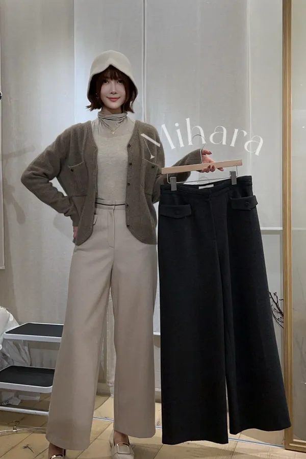 | S腰33臀49褲檔33全長101cm | M腰35臀49褲檔34全長101cm | L腰37臀51褲檔35全長103cm(以上尺寸為<單面平量/CM>) | 人造絲15%,前鉤釦、拉鍊,側口袋 | Model:小田167cm/48kg |
