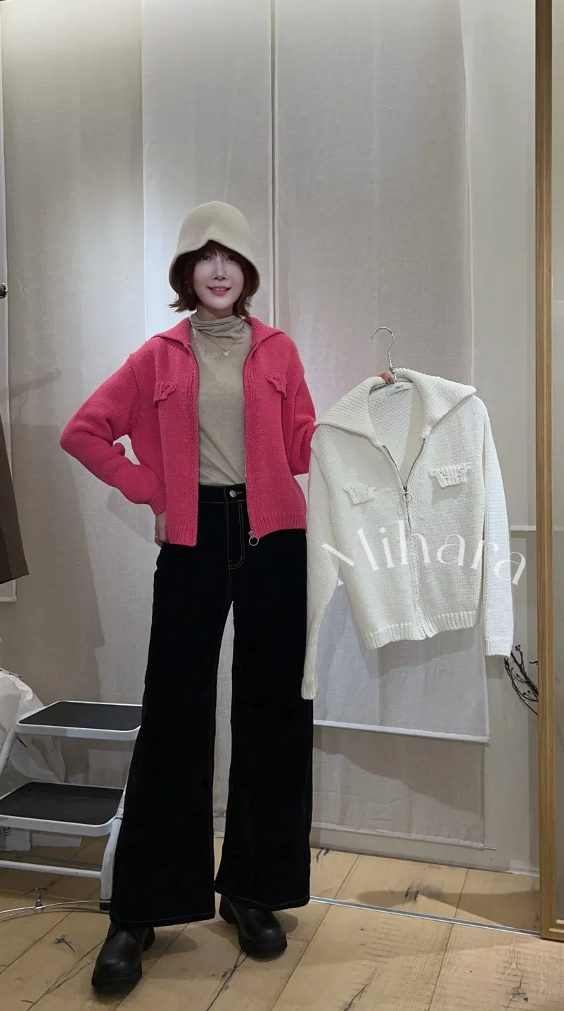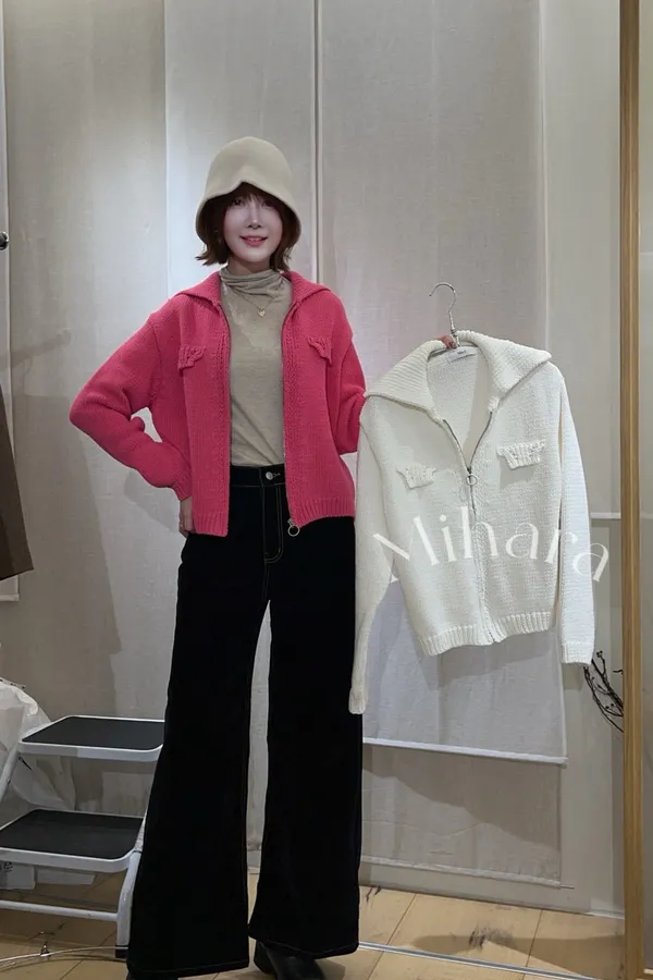 A12 0107(限量特)氣質歐膩家純棉針織翻領外套2色