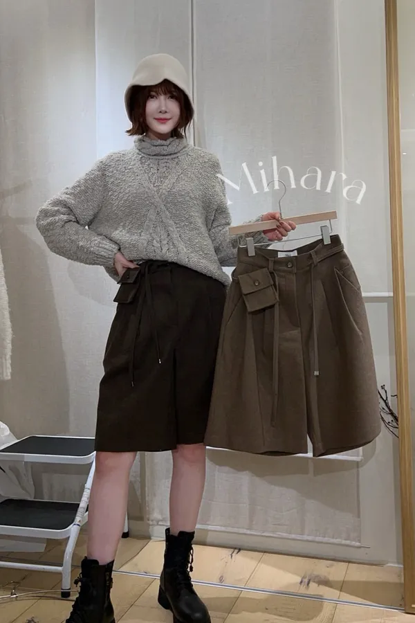 A16 0107(限量特)氣質歐膩家A字五分羊毛39%針織寬褲附小包腰帶2色(S/M/L)