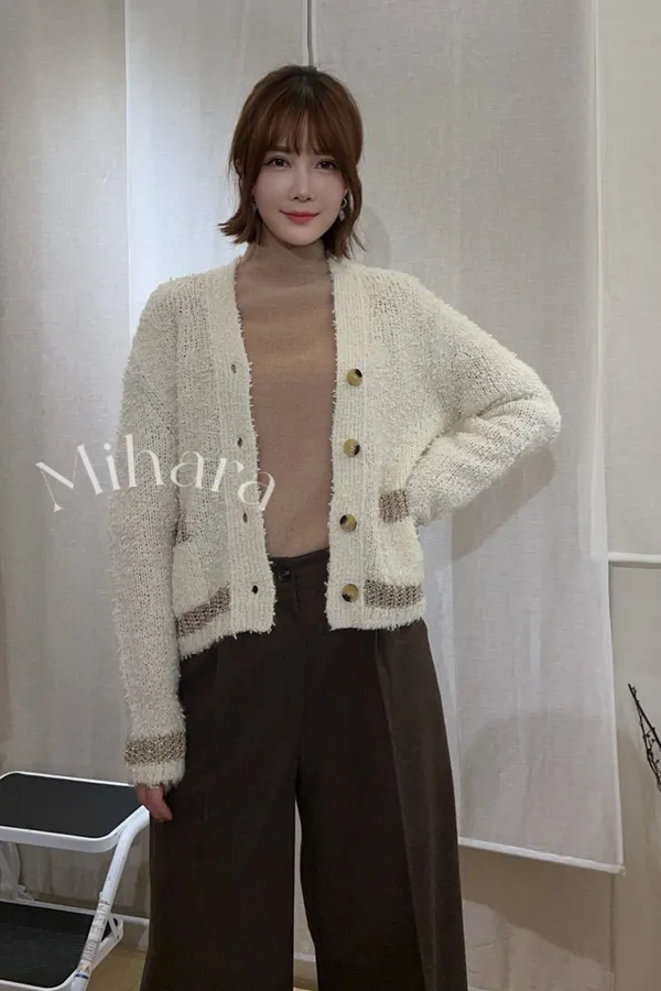 A20 0107(限量特)氣質歐膩家撞色滾邊排釦V領羊毛混羊駝毛針織外套