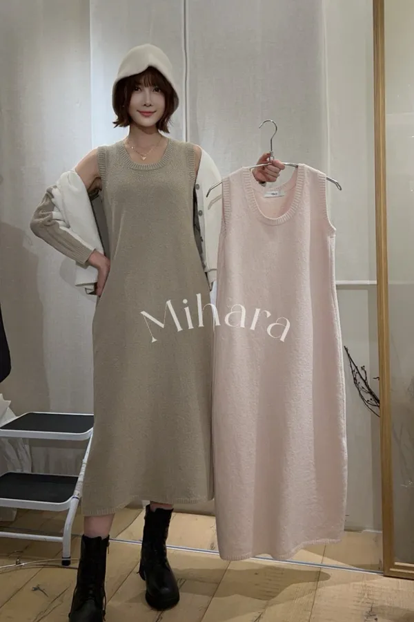 A29 0107(限量特)氣質歐膩家後開衩圓領棉質針織背心洋裝2色