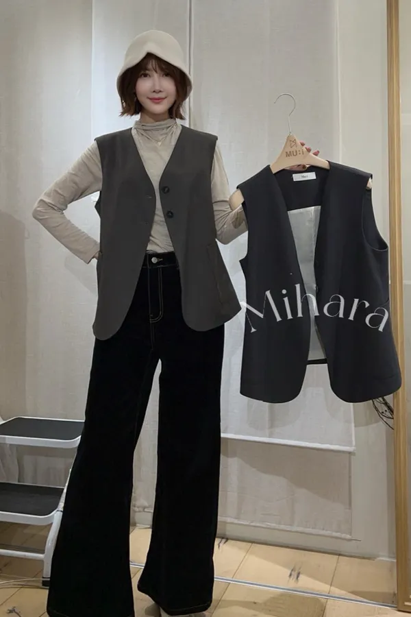 A30 0107(限量特)氣質歐膩家羊毛混人造絲西裝背心2色