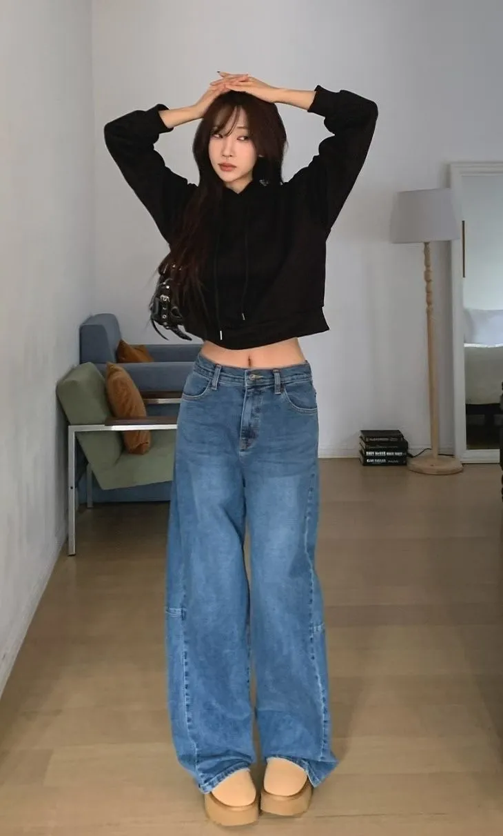 C456(限量特)中腰後鬆緊大長腿顯瘦牛仔褲(S-XXL)