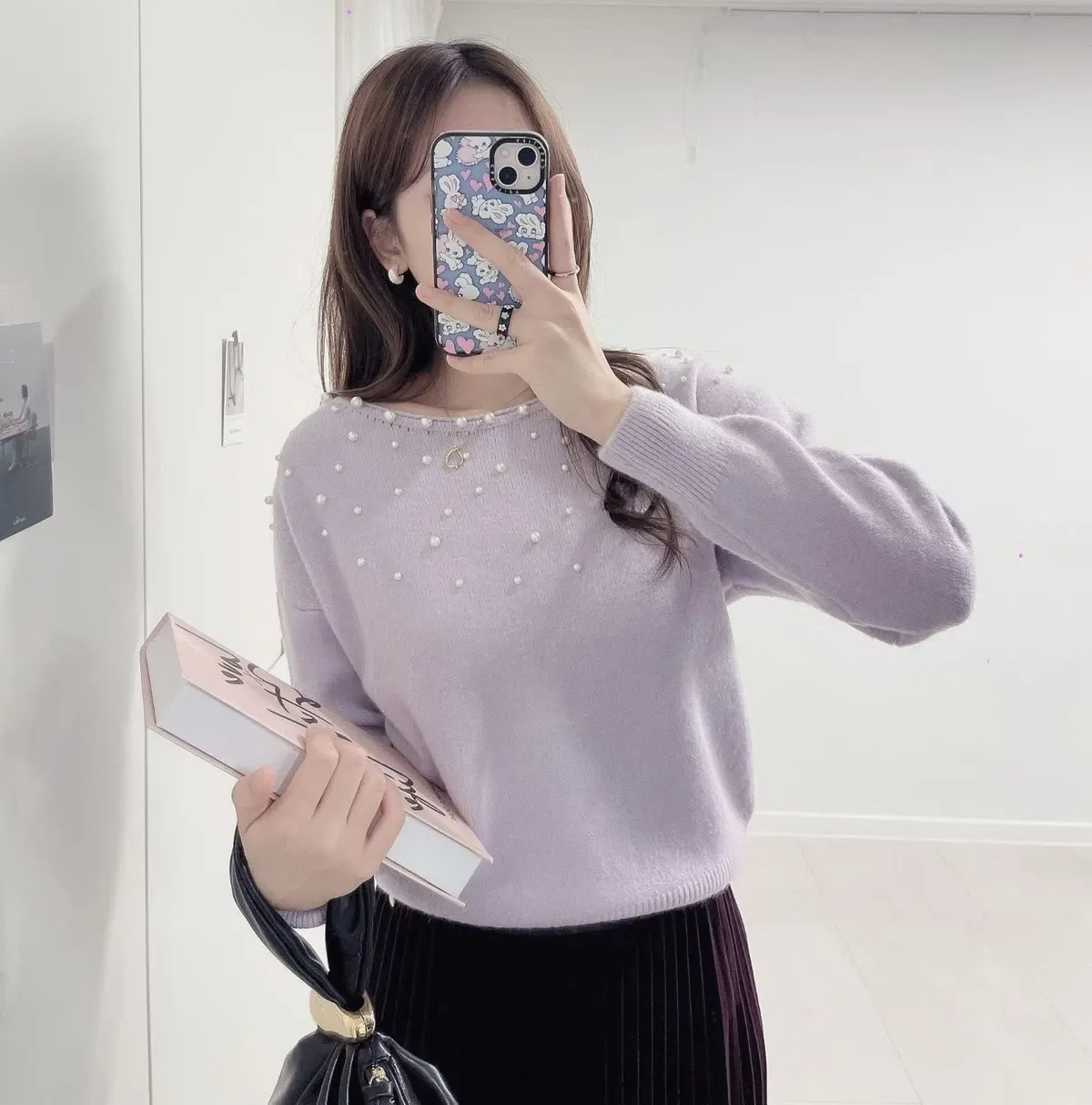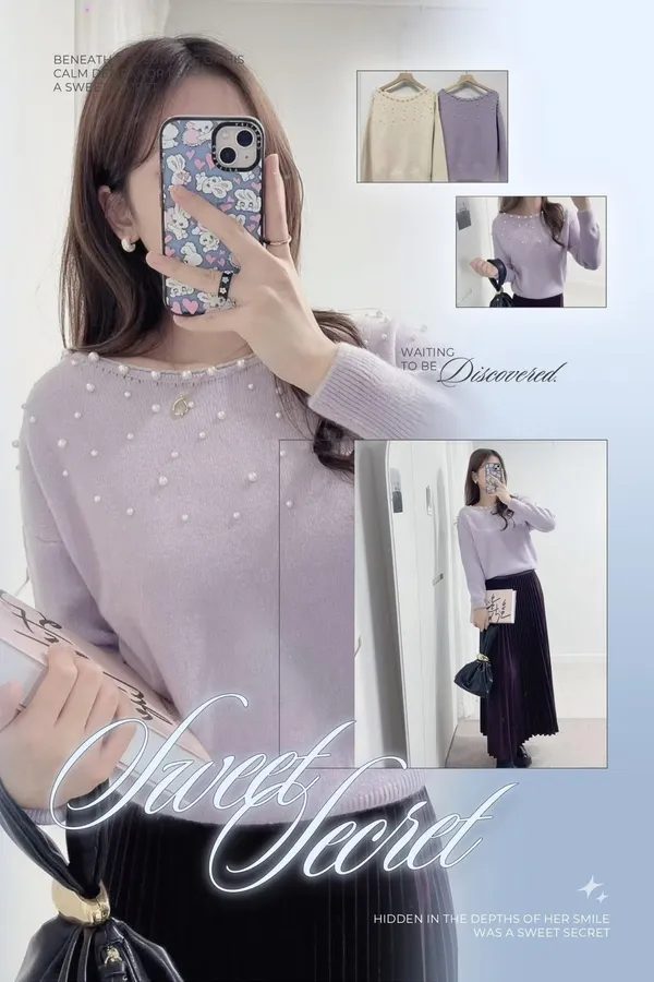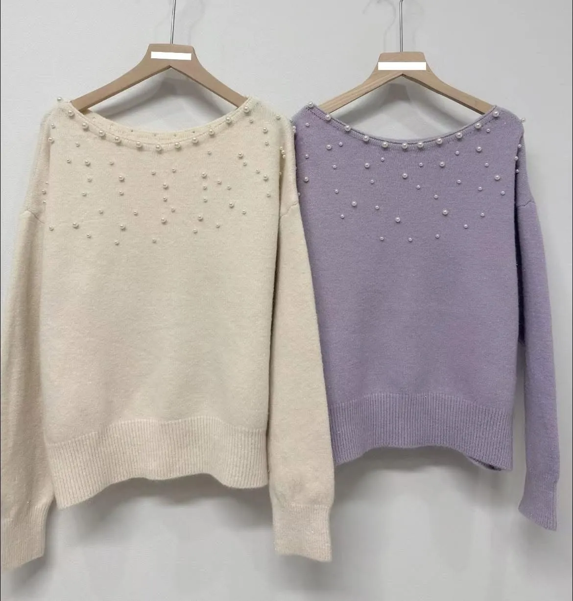 C66珍珠寬領針織上衣2色