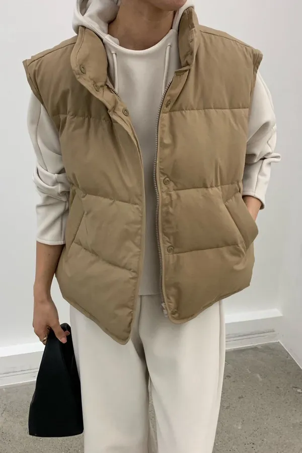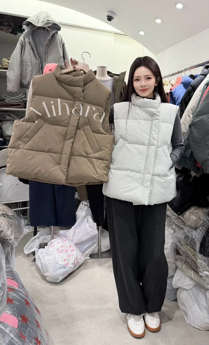 A4 0111(限量特)高檔櫃鴨絨100%斜拉鍊半領背心2色