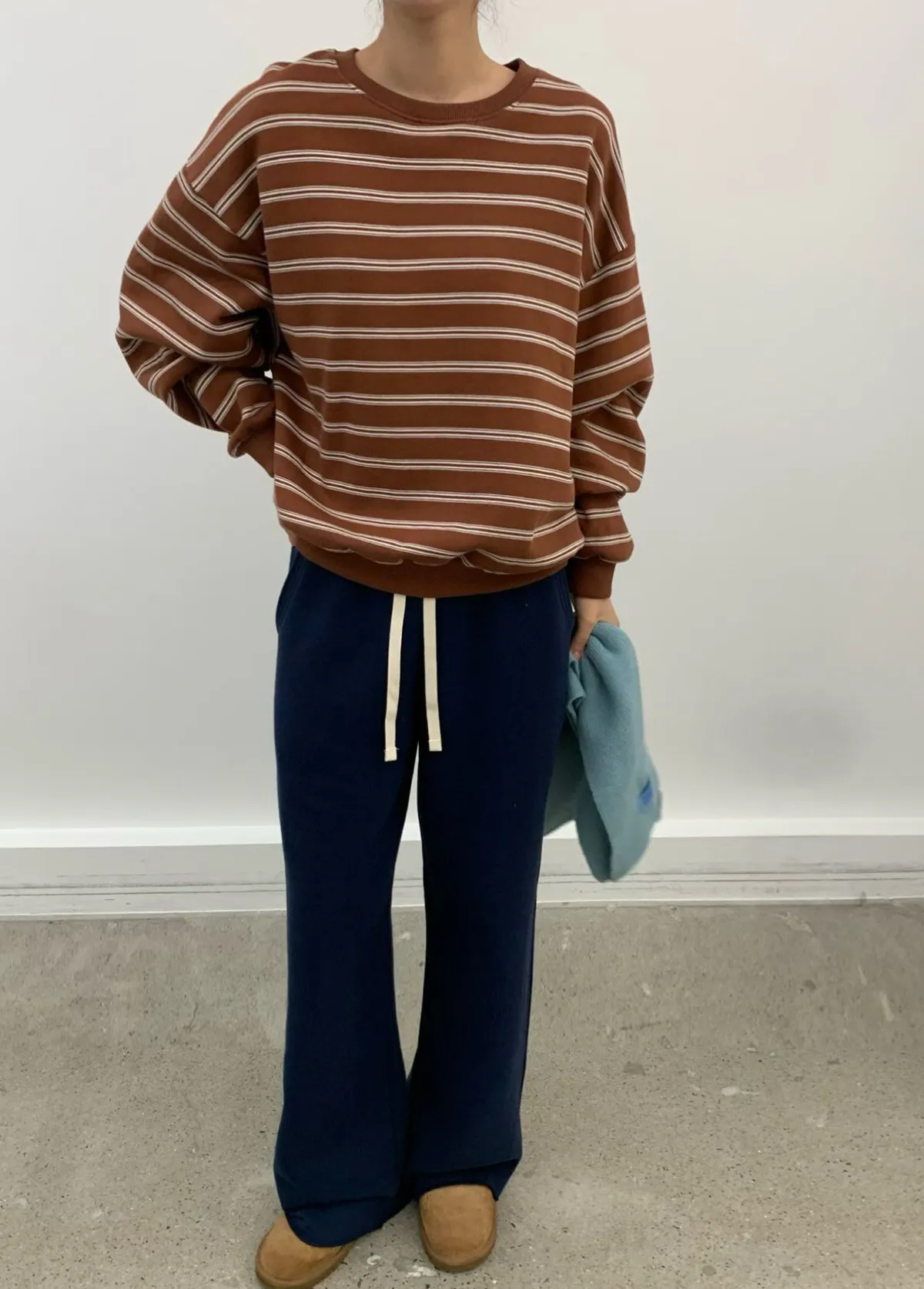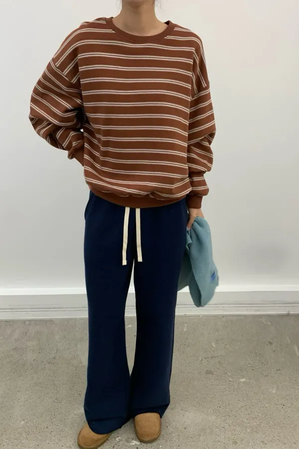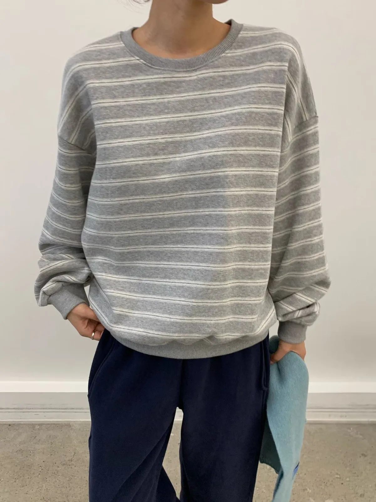 A11 0111(限量特)高檔櫃橫條圓領內刷毛大學T恤2色