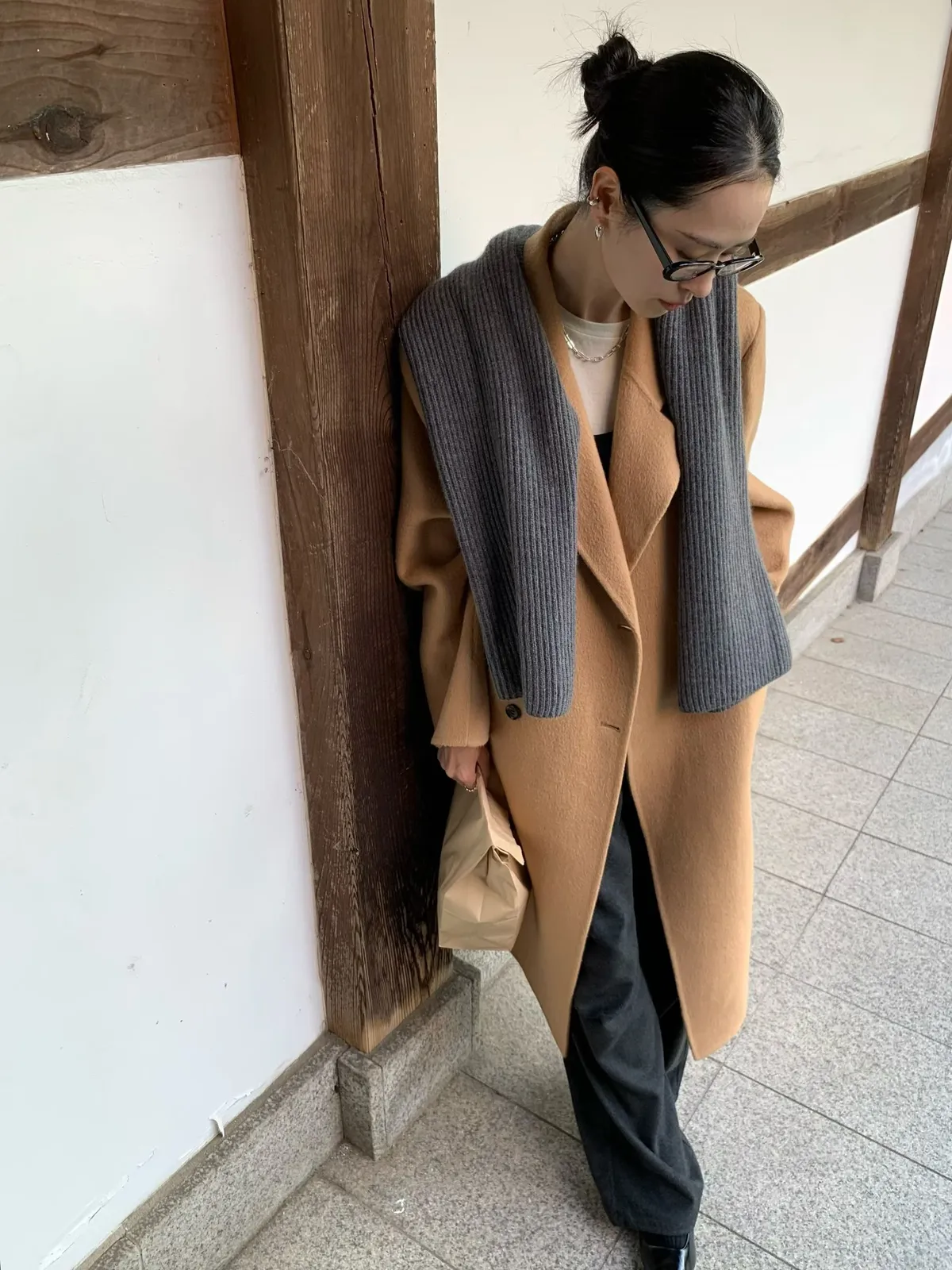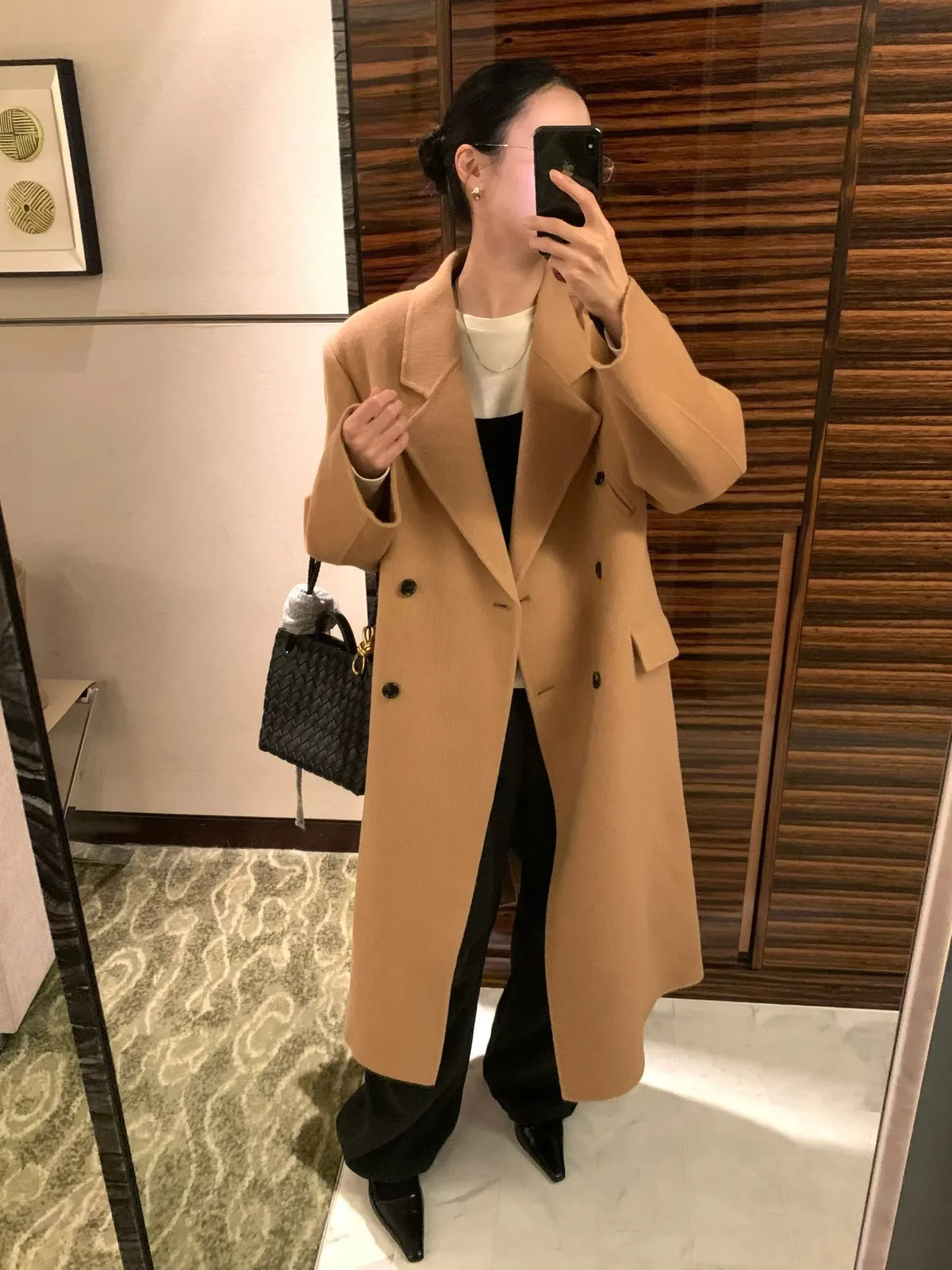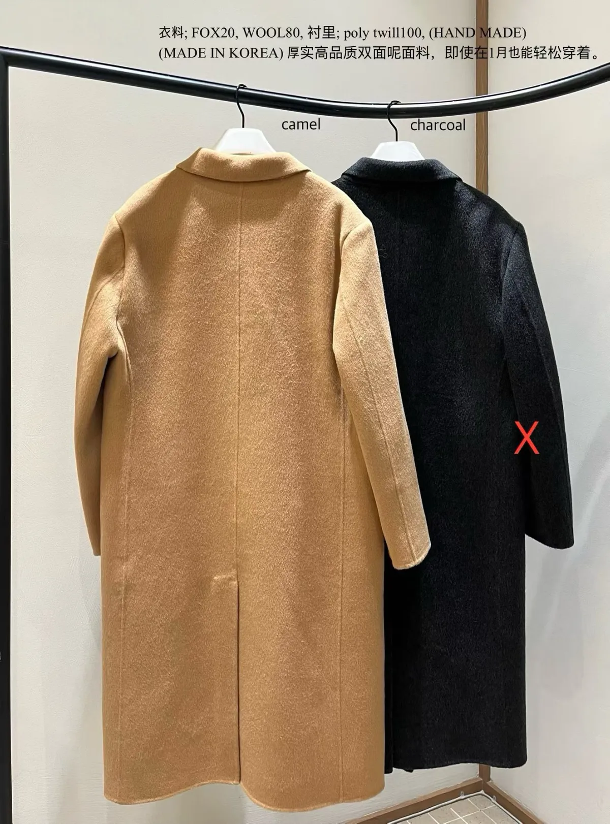 A16 0111(限量特)高檔櫃羊毛混狐狸毛長版大衣外套