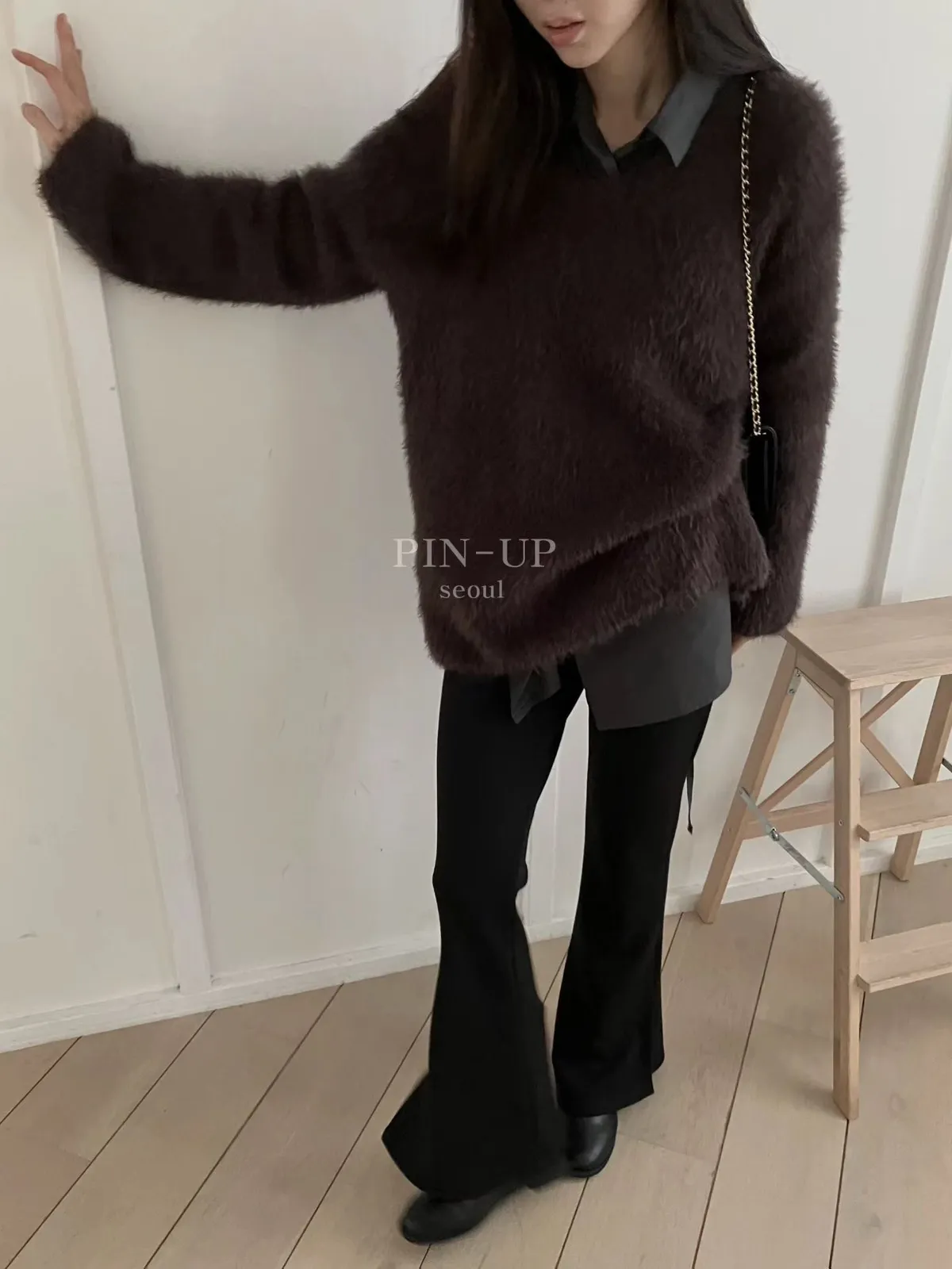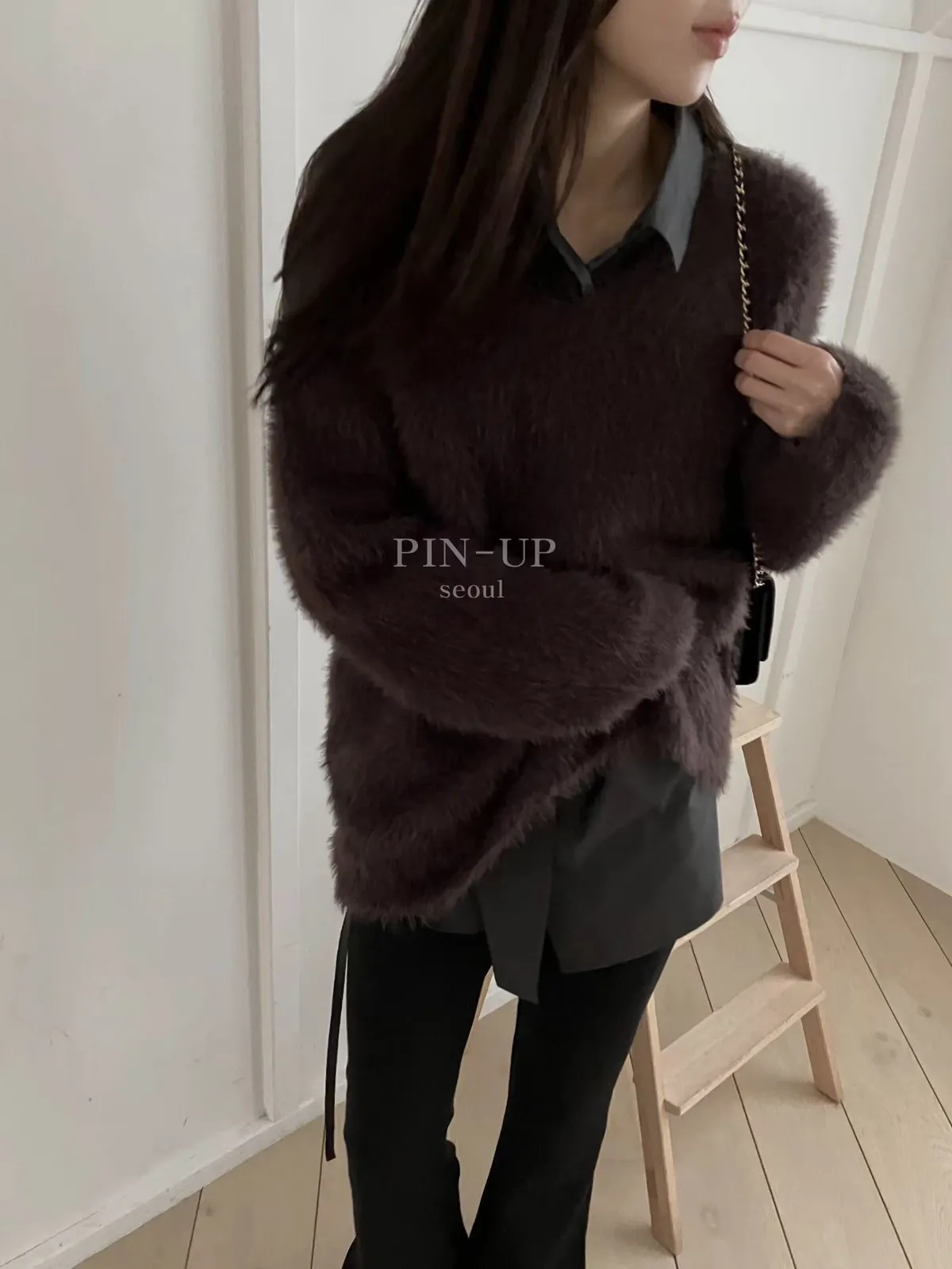 A44 0112(限量特)高檔設計家V領毛毛上衣