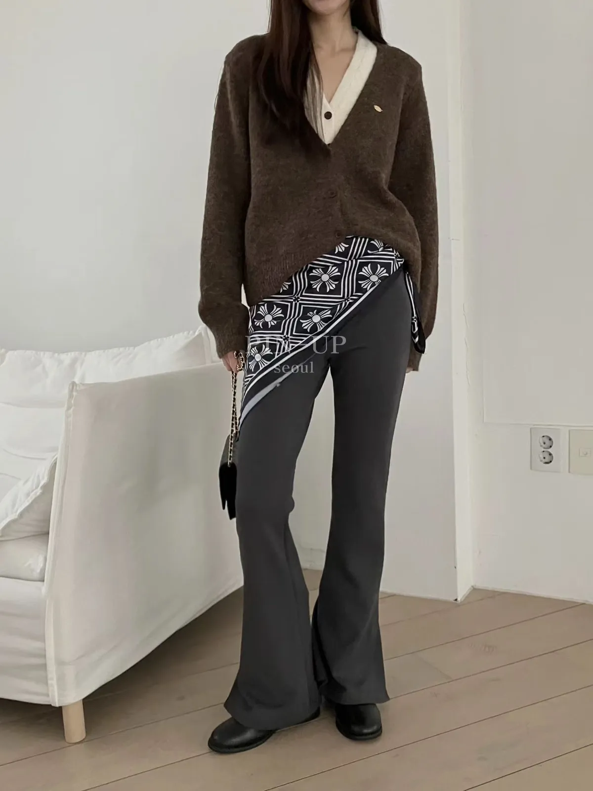 A45 0112高檔設計家側開衩棉質喇叭褲2色