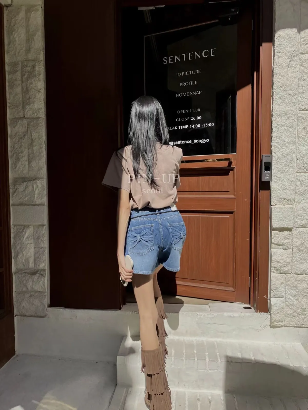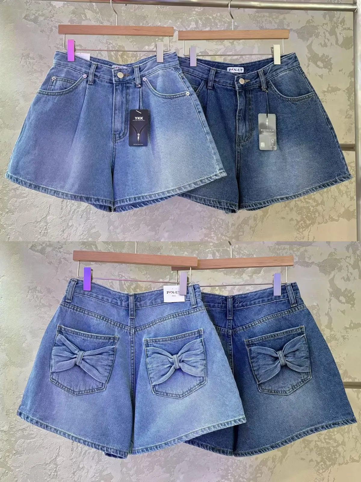 A48 0112(限量特)高檔設計家蝴蝶結口袋立體壓褶A字牛仔短褲2色(S/M)