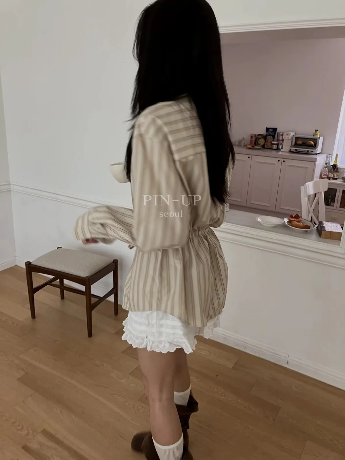 A49 0112(限量特)高檔設計家收腰直紋棉質襯衫2色