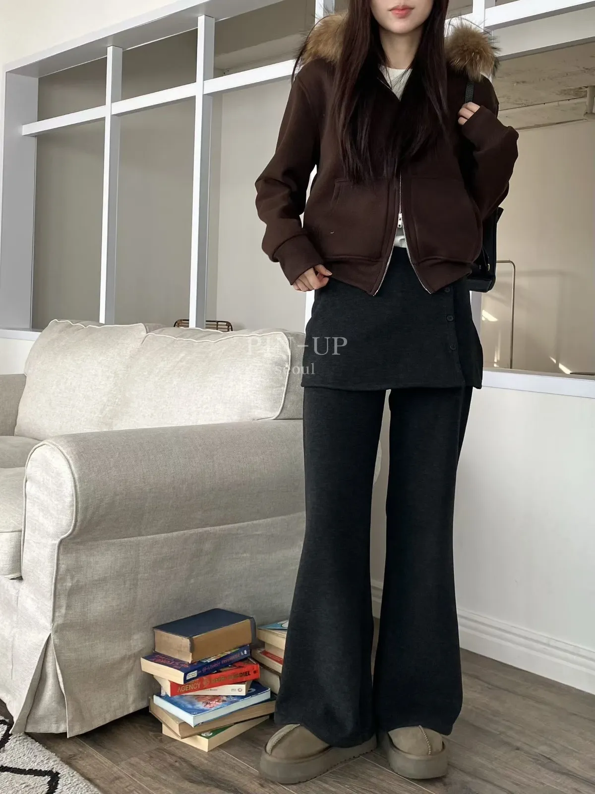 A57 0112(限量特)高檔設計家假兩件式內刷絨喇叭褲3色