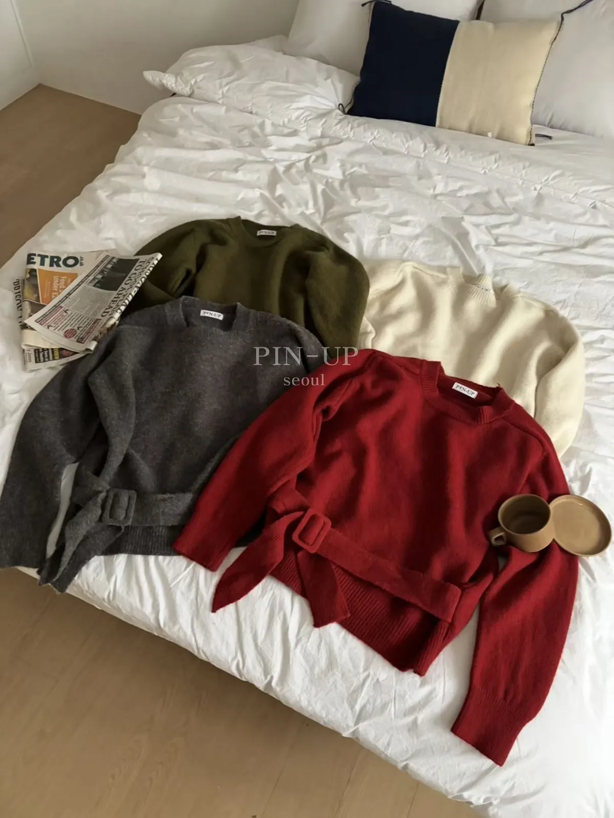 A58 0112(限量特)高檔設計家腰帶圓領針織毛衣3色