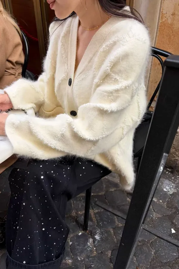 C209(限量特)許願高檔V領菱紋開釦外套