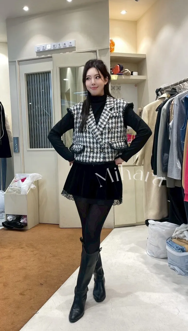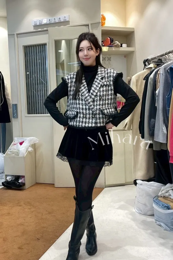 A6 0115網紅歐膩家格紋雙排釦翻領小香背心