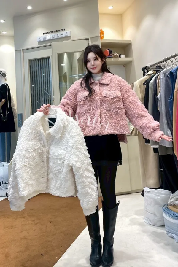 A8 0115網紅歐膩家拼接蕾絲翻領QQ毛外套2色