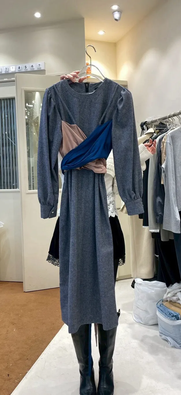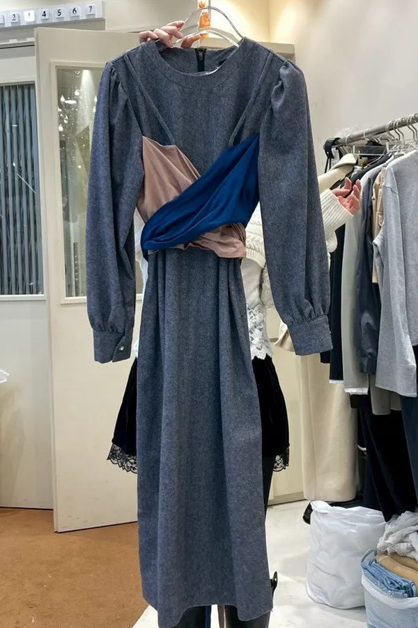 A15 0115(限量特)網紅歐膩家撞色綁帶圓領羊毛30%針織洋裝